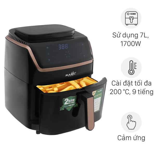Ngoài ra còn được trang bị 8 chương trình nấu ăn cài đặt sẵn, bao gồm: khoai tây chiên, đùi gà, rau củ, bít tết, cá, pizza, bánh bao, snack khoai tây.