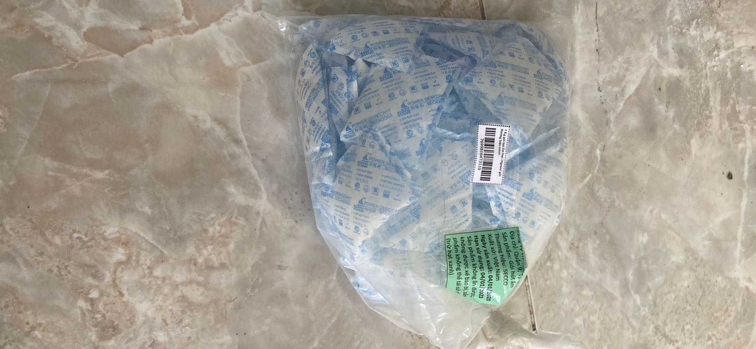 gói hút ẩm cũ đã bị no ẩm chuyển sang màu vàng, có gói bị vỡ, hạt hút ẩm rơi ra ngoài. tôi muốn đổi hàng.