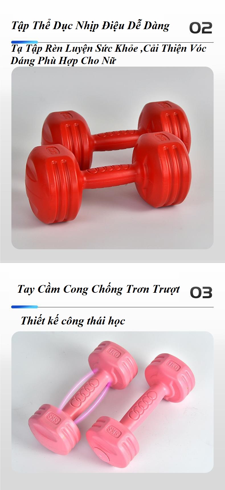 - 2KG Dành cho các bạn nữ tập thể hình nhẹ lần đầu hoặc tập thể dục nhịp điệu, giảm cân
