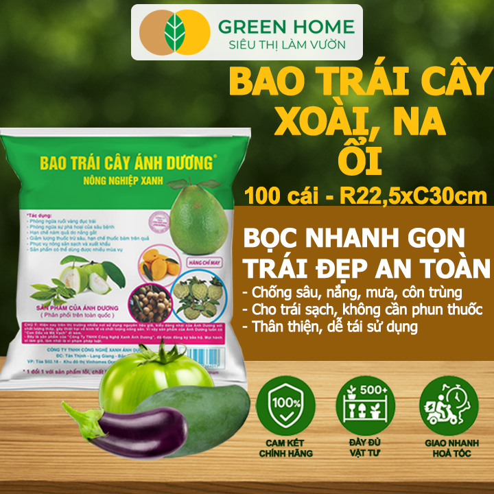 Thông số kỹ thuật 100 Túi Bọc Hoa Quả GreenHome, Ổi Bưởi Xoài Na Mướp (Có Nút Cài), Sử Dụng 3-5 Năm, Nhiều Kích Thước