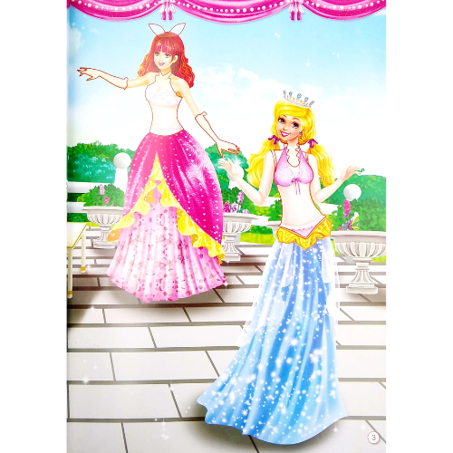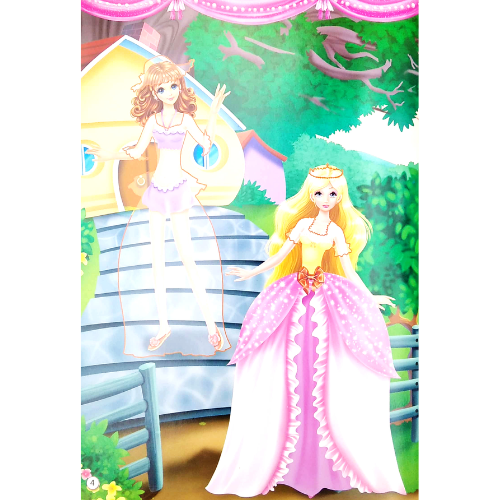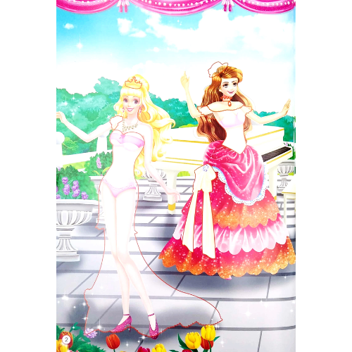 - "Trang sách này thật lung linh! Một nàng công chúa với mái tóc vàng óng ả đang đứng bên cửa sổ lâu đài. Xung quanh cô bé là hàng trăm chiếc váy với đủ các màu sắc, kiểu dáng khác nhau. Bé có thể chọn cho cô ấy một chiếc váy dạ hội lộng lẫy, hoặc một bộ váy công chúa xinh xắn để đi dạo trong vườn hoa."