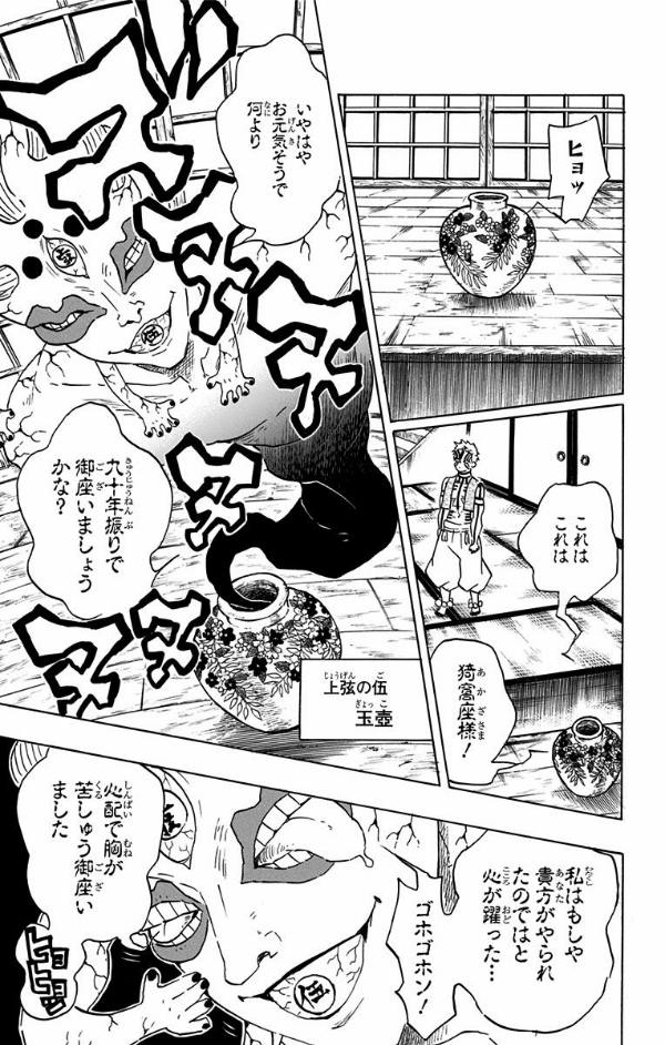 113年振りに上弦の鬼が欠け、憤る無惨は残りの上弦の鬼たちへ更なる命を下す!! 一方、妓夫太郎との戦いで刀を刃毀れさせた炭治郎に鋼鐵塚は大激怒。新たな刀を求めて、炭治郎は鋼鐵塚のいる刀鍛冶の里へと訪れるが…!?