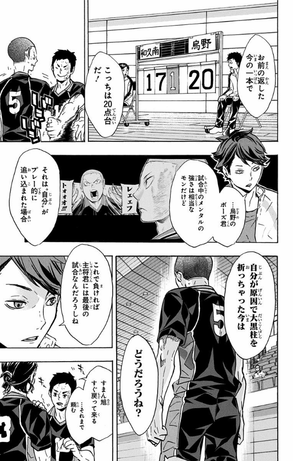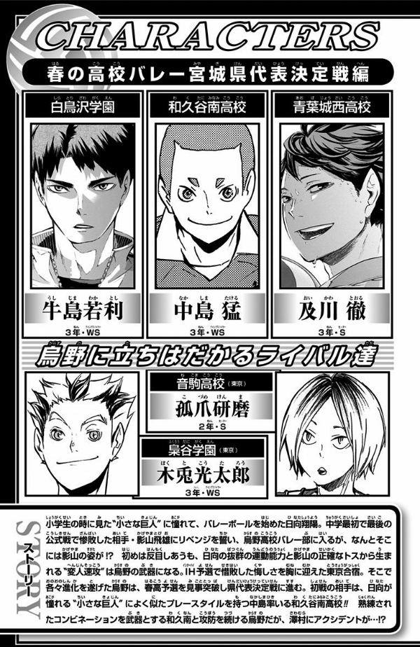 代表決定戦準々決勝で、主将・澤村が負傷!! 試合からの離脱を余儀なくされてしまう。チームの土台を失った烏野は、土台代理として縁下を送り出すが!? 「ニセコイ」との奇跡のコラボ「ニセキュー!!」も収録!!