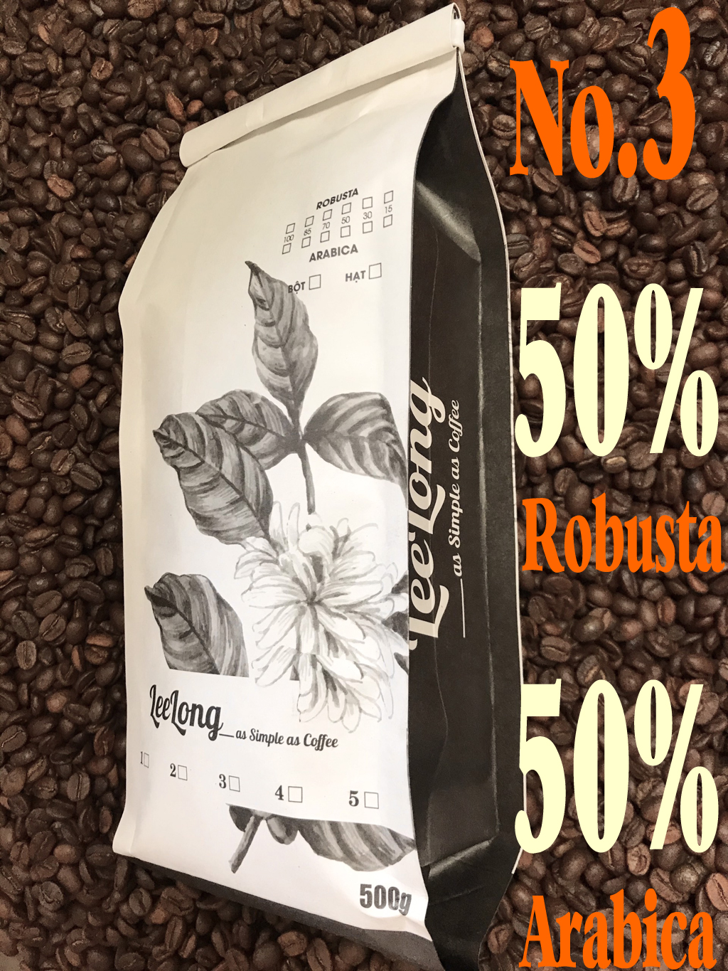Thông số kỹ thuật 1kg cafe LeeLong3 hậu vị tròn đầy (50 Robusta / 50 Arabica)