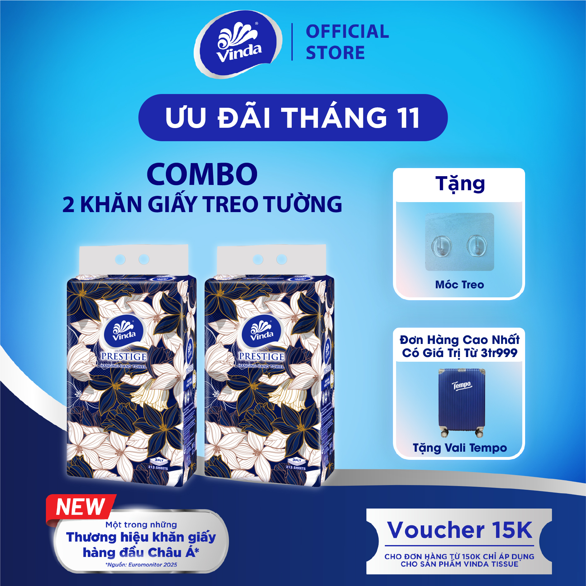 Khăn giấy treo tường cao cấp Vinda Prestige 4D – sạch sẽ, tiện lợi, hiện đại, là lựa chọn lý tưởng cho các khu vực công cộng, nhà hàng – khách sạn, văn phòng làm việc hoặc gia đình hiện đại.