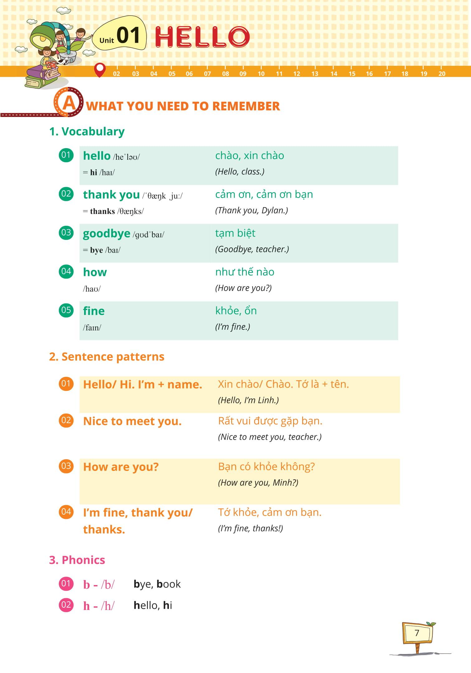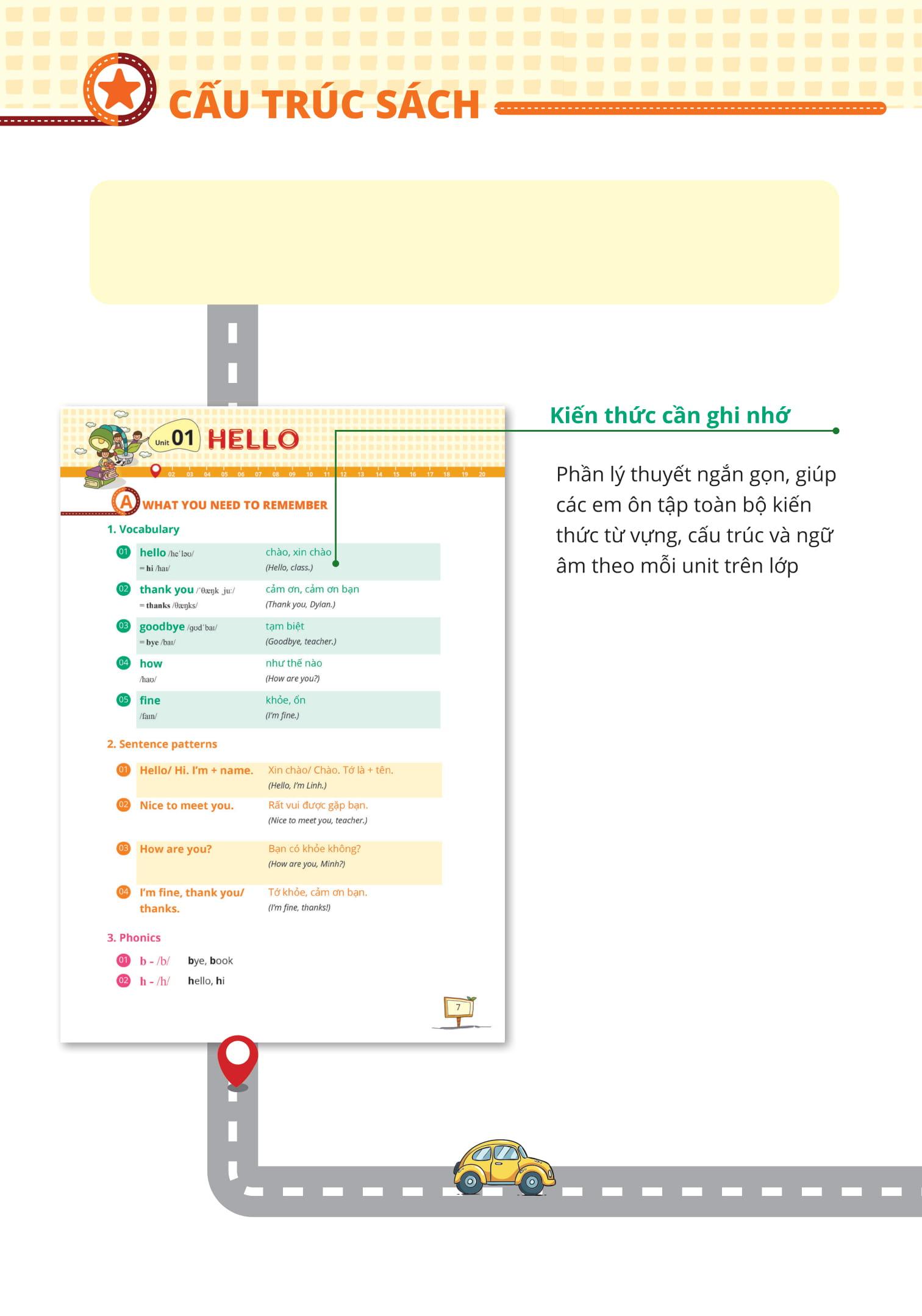 Phần lý thuyết ngắn gọn, giúp các em ôn tập toàn bộ kiến thức từ vựng, cấu trúc và ngữ âm theo mỗi unit trên lớp