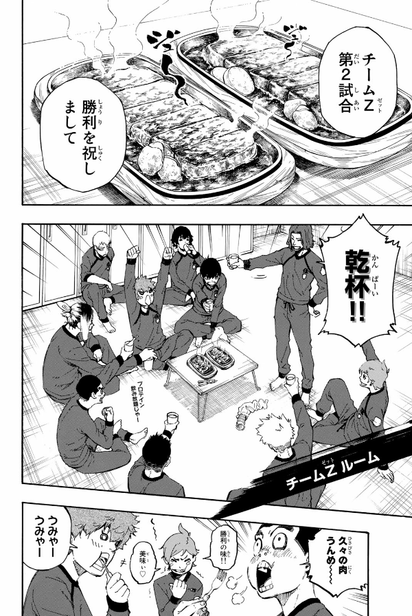 "青い監獄(ブルーロック)"一次選考も、4試合中2試合が終了。人生を懸けた真剣勝負の中で相手を打ち負かし、勝つことの快感を味わった潔とチームZは、士気高くチームYとの第3試合に臨む!! だが、チームZに予想外の内部分裂が発生!? さらに戦うことを諦めかけた千切豹馬という問題も抱え、Yのエース・鰐間兄弟の猛攻に打ち勝てるのか──。