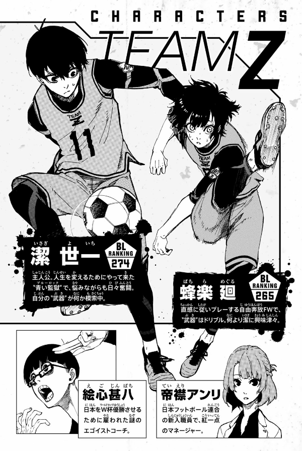 2018年、W杯。日本代表は無残に散った。今大会もベスト16止まり…。アジアでは強豪? 組織力は世界レベル? そんなことは、もう聞き飽きた! 課題は、絶対的な「エースストライカー」の不在。悲願“W杯優勝”のために、ゴールに飢え、勝利に渇き、試合を一変させる革新的な“1人”を作るべく、日本フットボール連合は300人のユース年代の選手達を招集する。まだ無名の高校2年生・潔世一は、己のエゴを以って299人を蹴落とし、最強のエースストライカーの道を駆け上れるか!? 登場人物、全員“俺様”! 史上最もイカれたエゴイストFWサッカー漫画、ここに開幕!!