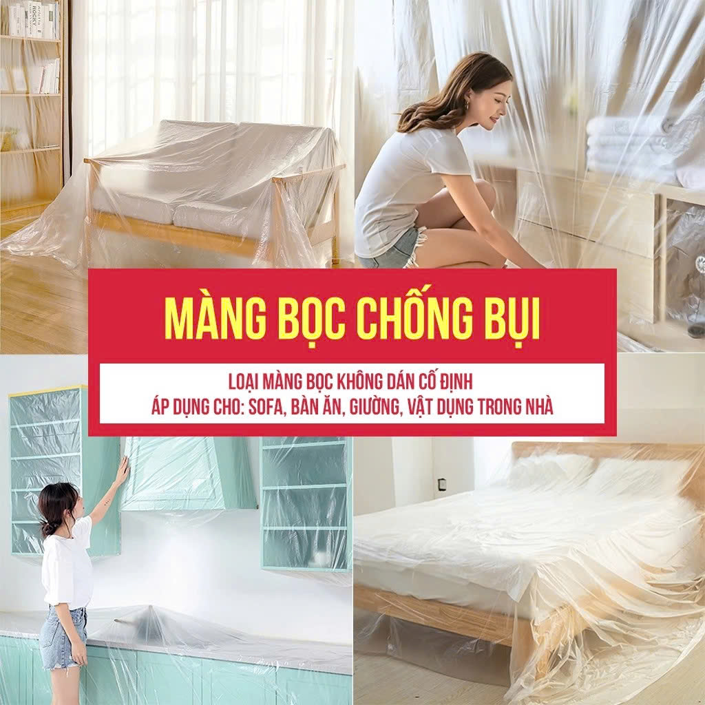 Thông số kỹ thuật 3.2m*12m Màng PE Bọc Nội Thất Chống Bụi Chống Nước Khi Thi Công MÀU TRẮNG TRONG