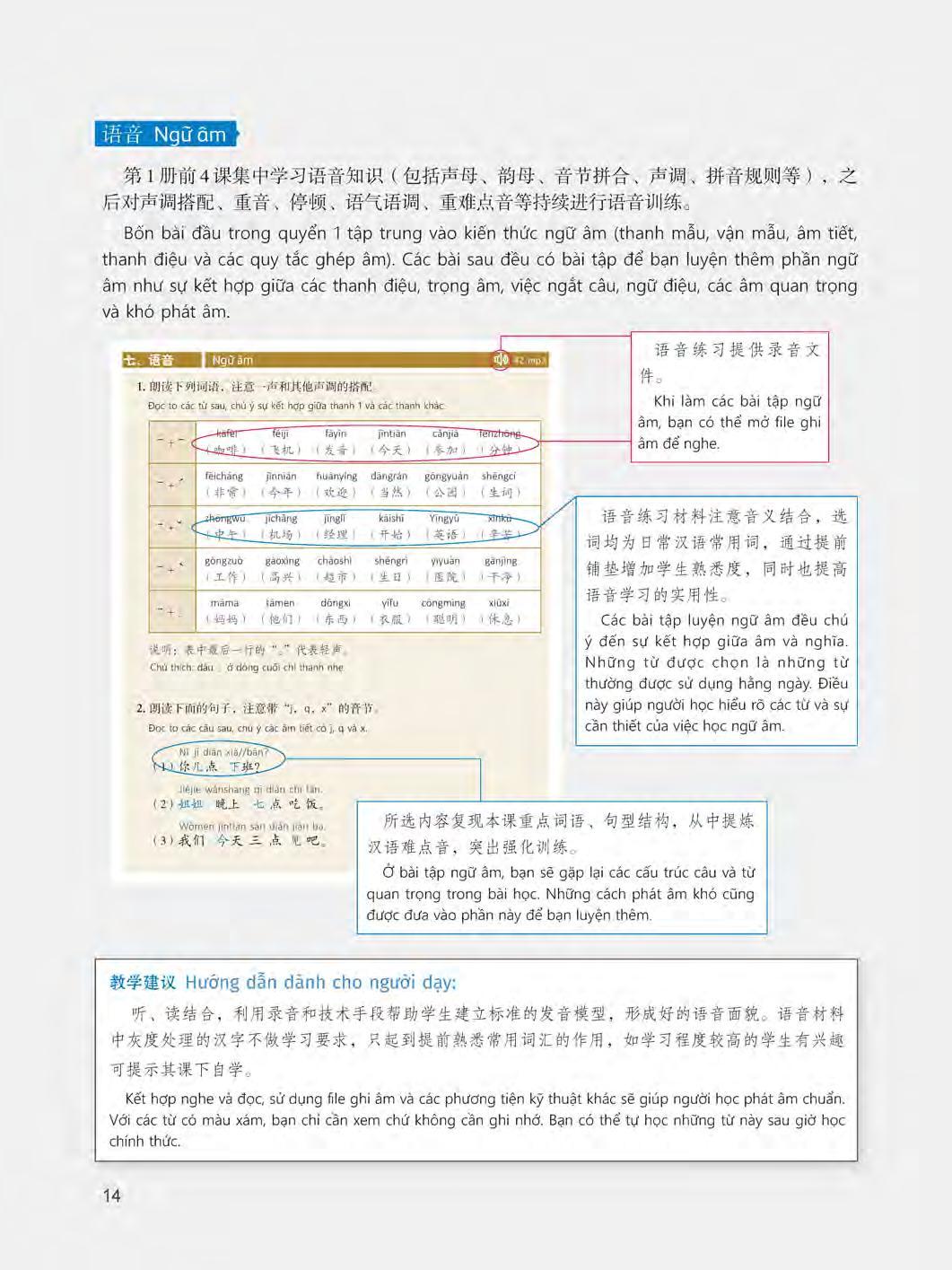 Kiến thức về ngữ âm (các quy tắc ghép âm, so sánh các âm quan trọng, sự kết hợp của các thanh điệu, trọng âm, việc ngắt câu, ngữ điệu…) được trình bày theo từng bước và có hệ thống. Phần ngữ âm còn cung cấp nhiều bài tập thực hành nhằm giúp bạn có nền tảng vững chắc để phát âm chính xác.
