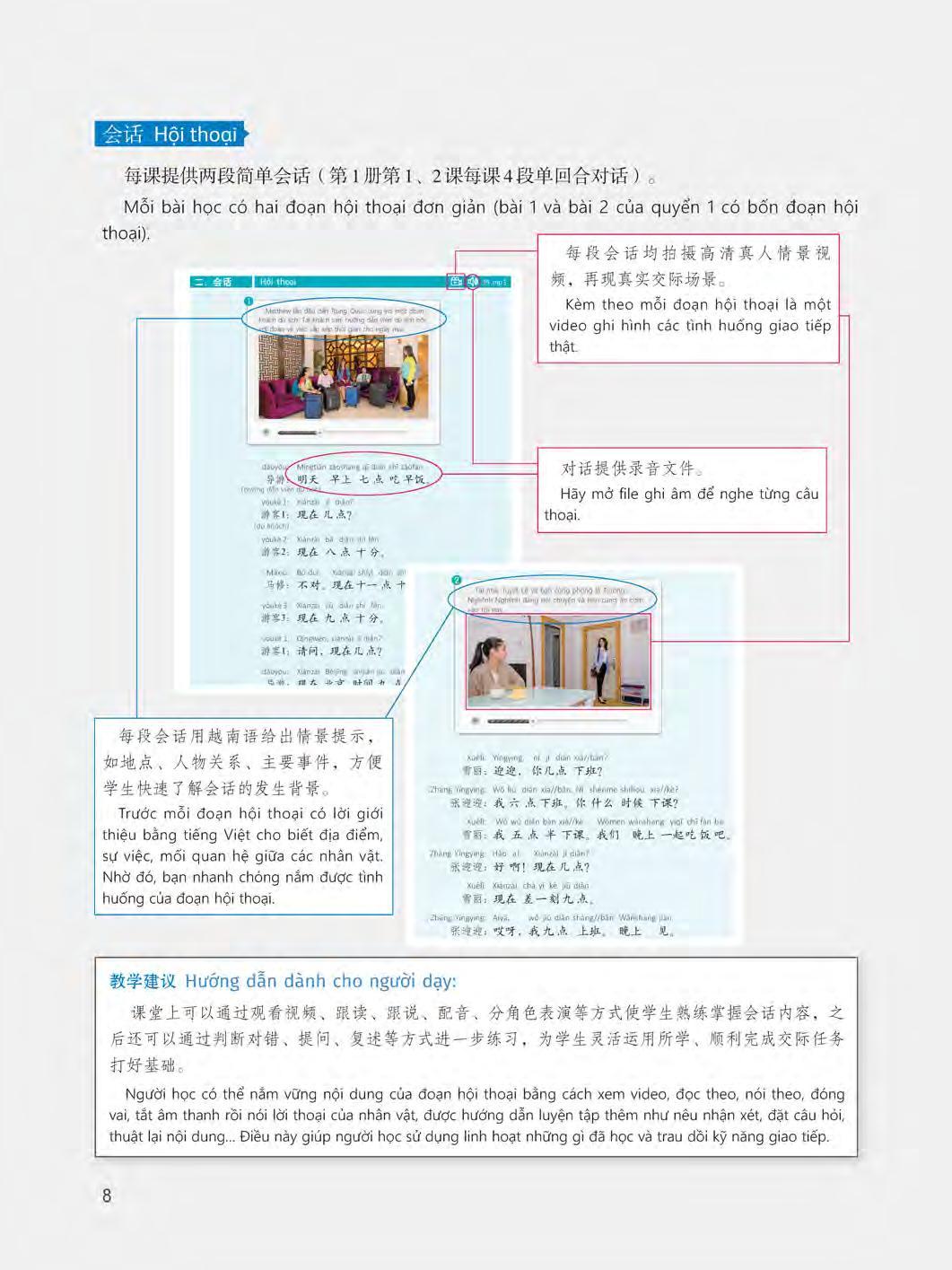 Được sắp xếp theo trình tự phù hợp, các đoạn hội thoại tập trung vào những chủ đề được giới thiệu ở mỗi bài học. Do gắn liền với tình huống giao tiếp thực tế, gần gũi với cuộc sống nên các đoạn hội thoại này giúp bạn bớt căng thẳng khi học tiếng Trung.