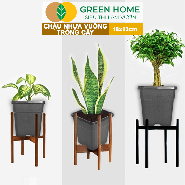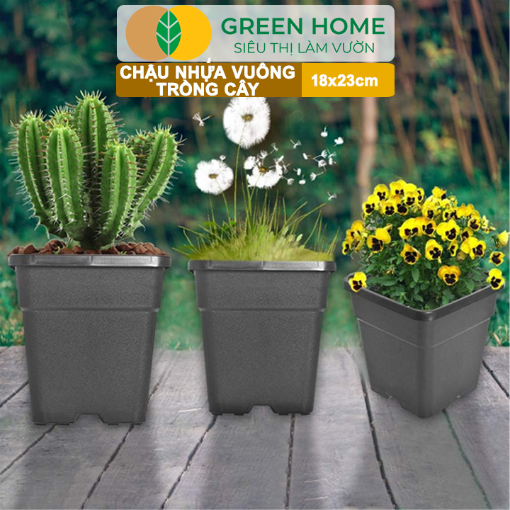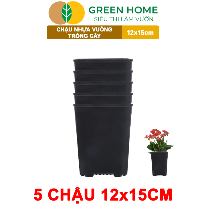 Thông số kỹ thuật 5 Chậu Vuông Trồng Cây Greenhome, Nhiều Kích Thước, Nhựa Cứng, Thoát Nước Tốt, Trồng Hoa, Kiểng Lá