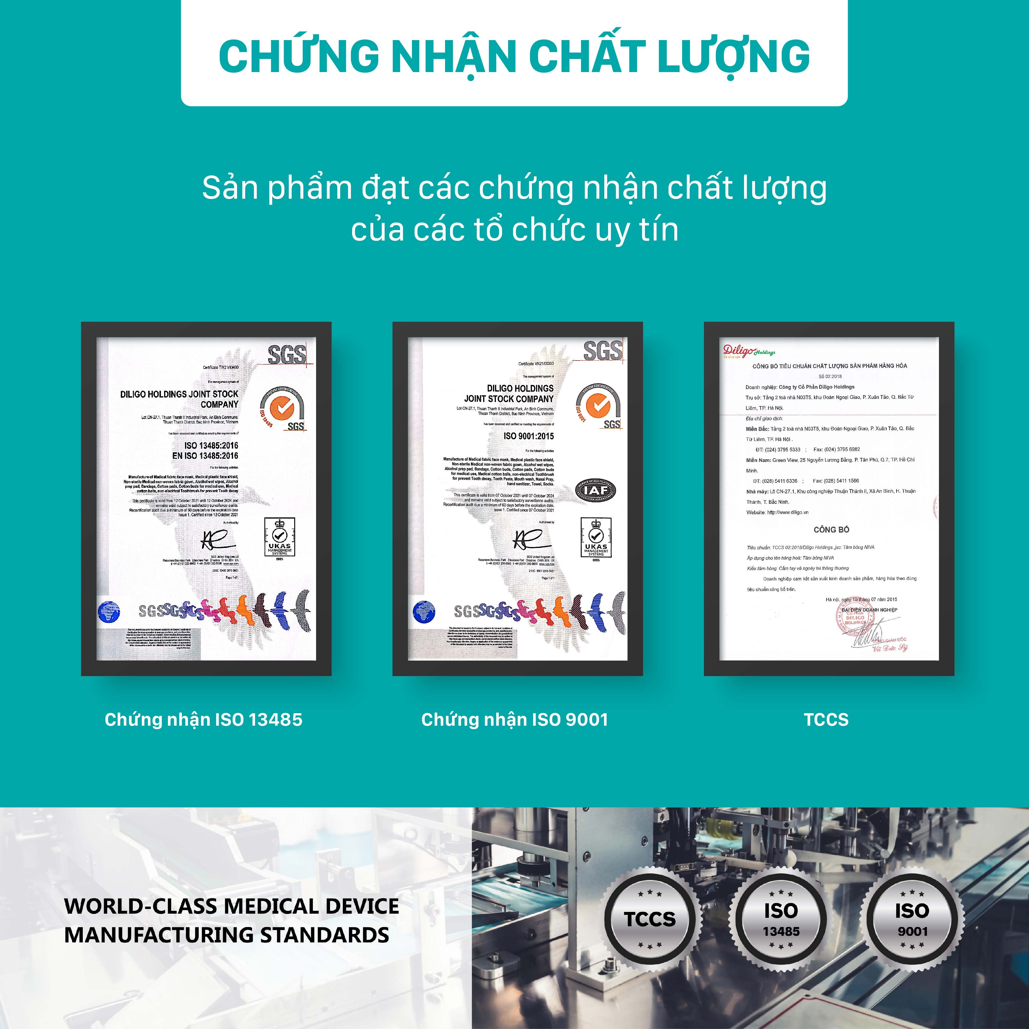 - Đạt các chứng nhận về chất lượng: Chứng nhận FDA (Hoa Kỳ), Viện Pasteur TP HCM kiểm nghiệm.