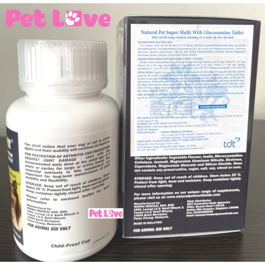 Thông số kỹ thuật 5 viên Natural Pet bổ sung dinh dưỡng và Glucosamine hỗ trợ xương khớp cho chó mèo