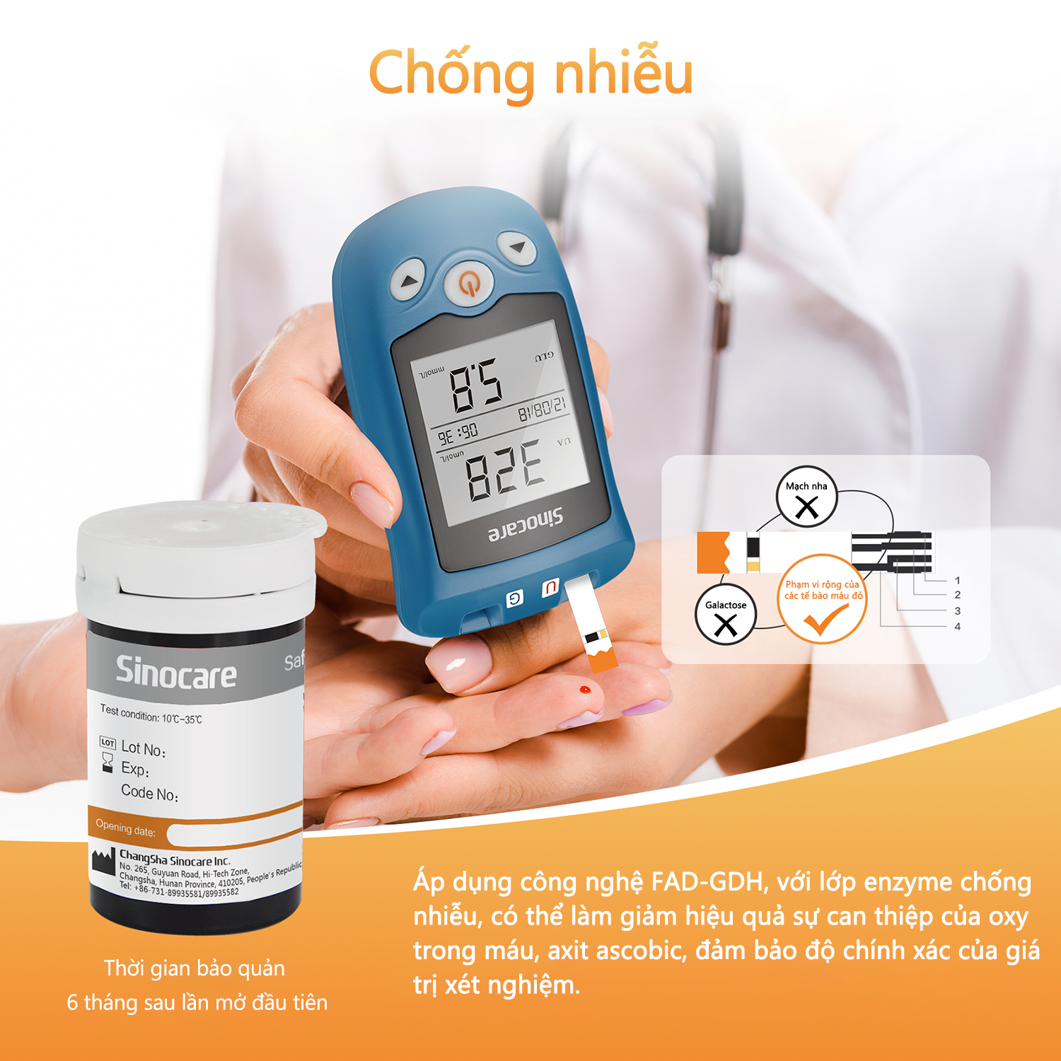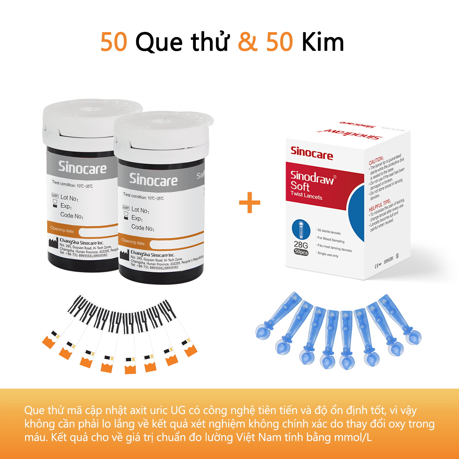 Thông số kỹ thuật 50 Que Thử Axid Uric ( Bệnh Gút) Dùng Cho Máy Safe AQ UG Sinocare kèm 50 Kim Chích máu