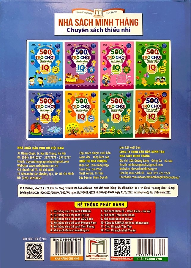 - Cuốn sách "500 Trò Chơi Rèn Luyện IQ (4-10 tuổi) - Khả Năng Ghi Nhớ" là một công cụ tuyệt vời giúp các bậc phụ huynh và giáo viên rèn luyện khả năng ghi nhớ cho trẻ nhỏ một cách hiệu quả và thú vị.