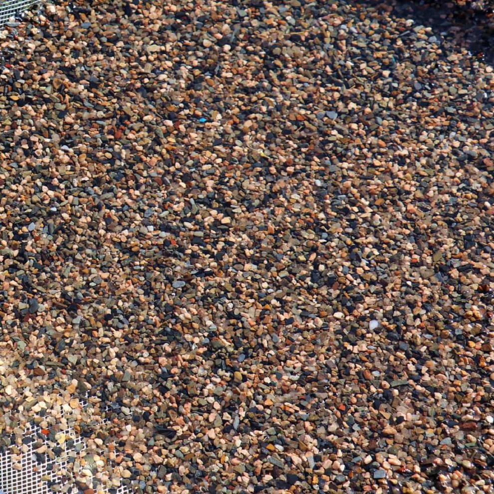 Sạn suối dẹt tự nhiên có màu sắc đa màu sách, có hình chữ nhật, hình tam giác. Kích thước trung bình bằng đuôi bút. Sỏi không bị phai màu, cũng như không bị tan ra khi vào nước.