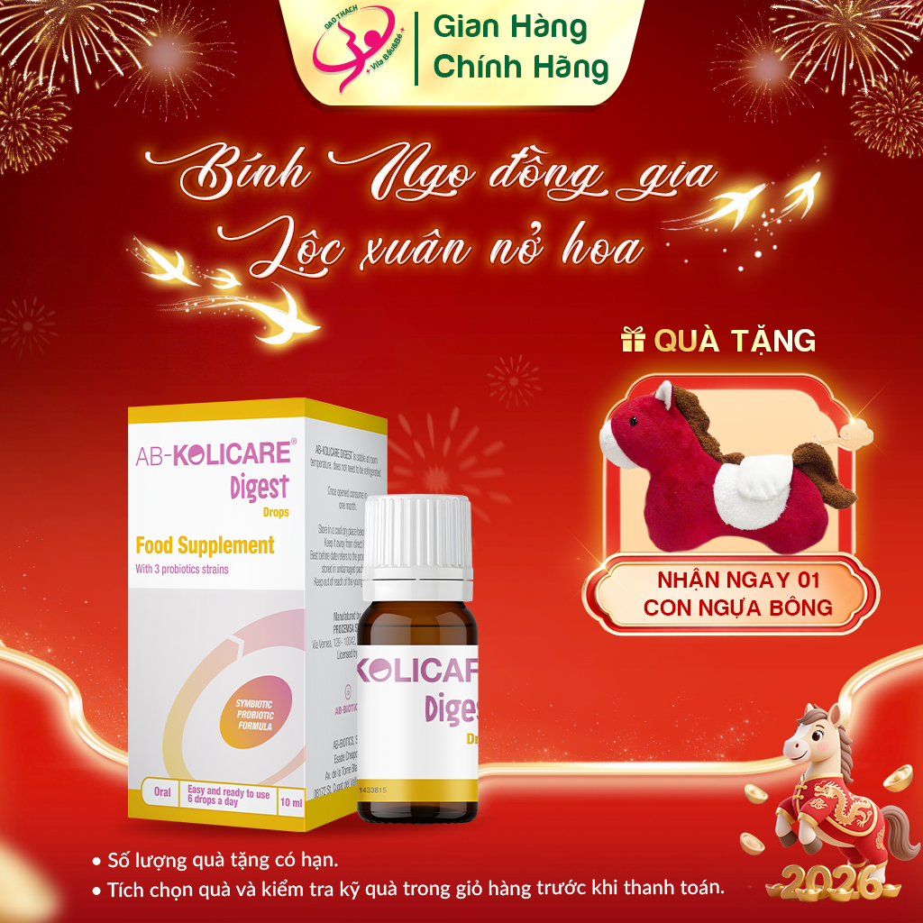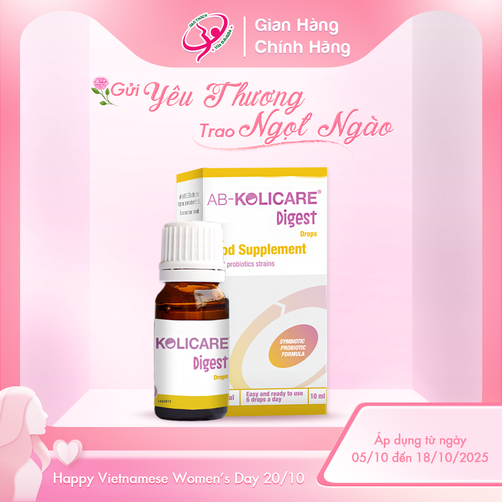 AB - KOLICARE Digest là men vi sinh của hãng AB - Biotics (Tây Ban Nha) được cấp bằng sáng chế quốc tế, sản xuất tại nhà máy Farmaceutici Procemsa Spa ở Italia. Sản phẩm giúp hỗ trợ điều trị tiêu chảy ở trẻ sơ sinh và trẻ nhỏ, đặc biệt là tiêu chảy do rota virus và dùng kháng sinh kéo dài.