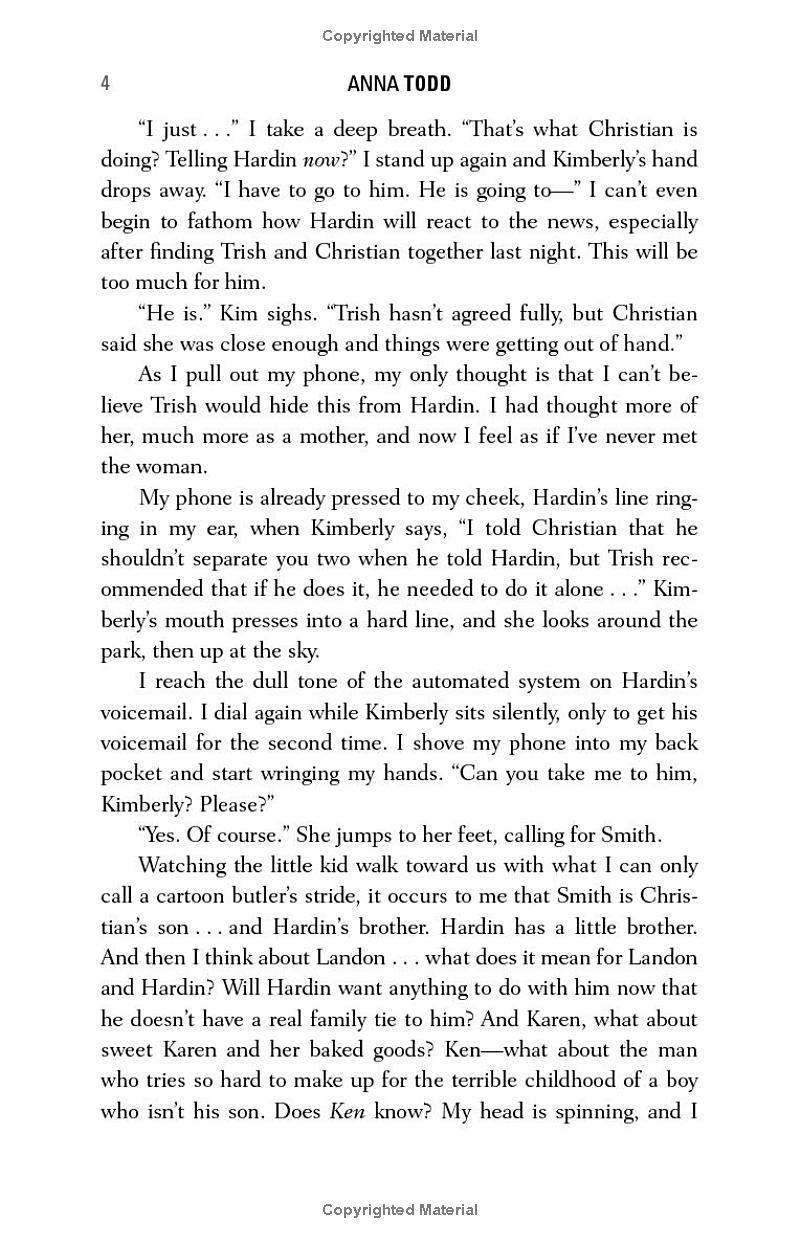 But the more layers of his past come to light, the darker he grows, and the harder he pushes Tessa—and everyone else in his life—away. Tessa’s not sure if she really can save him—not without sacrificing herself. She refuses to go down without a fight. But who is she fighting for—Hardin or herself?