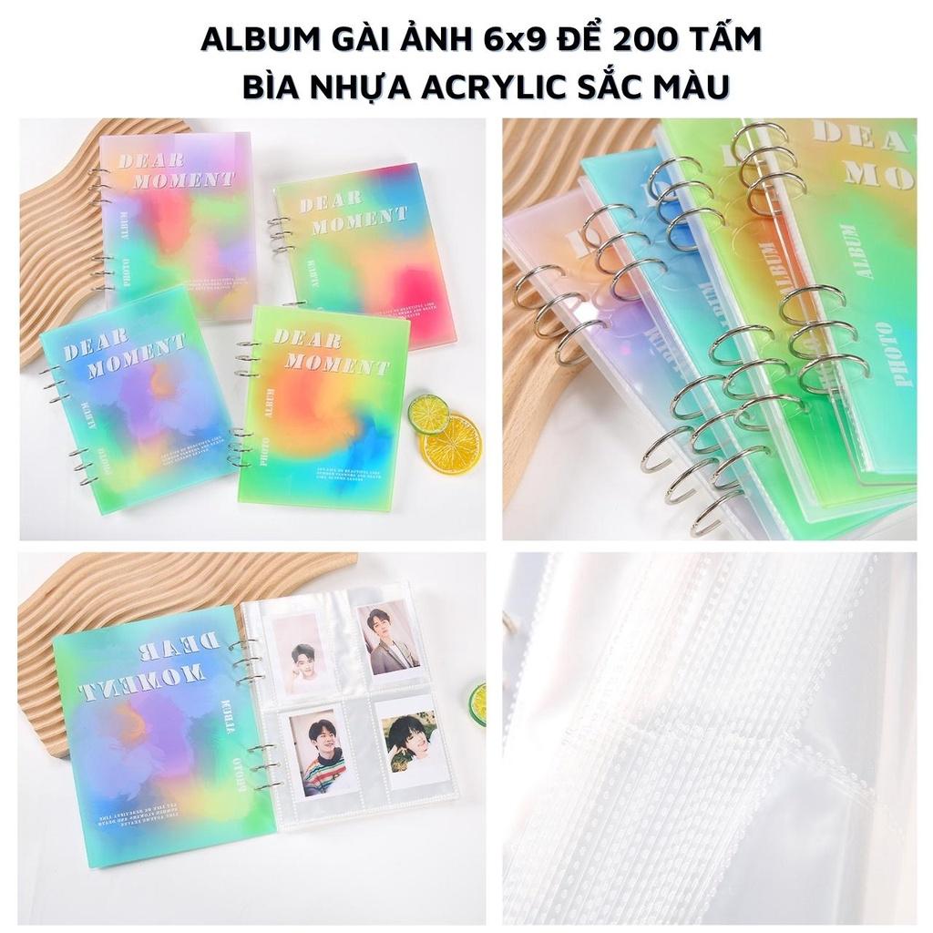 Album ảnh 6x9 đựng 200 tấm có ô ghi chú bìa nhựa Acrylic sắc màu để ảnh gia đình, binder đựng card Tú Vy Studio