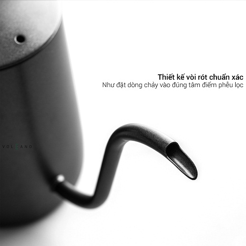 Chiếc vòi ngỗng mềm mại cho dòng chảy ổn định. Miệng vòi với thiết kế độc nhất giúp dòng nước chảy góc vuông 90 độ khi Pour.