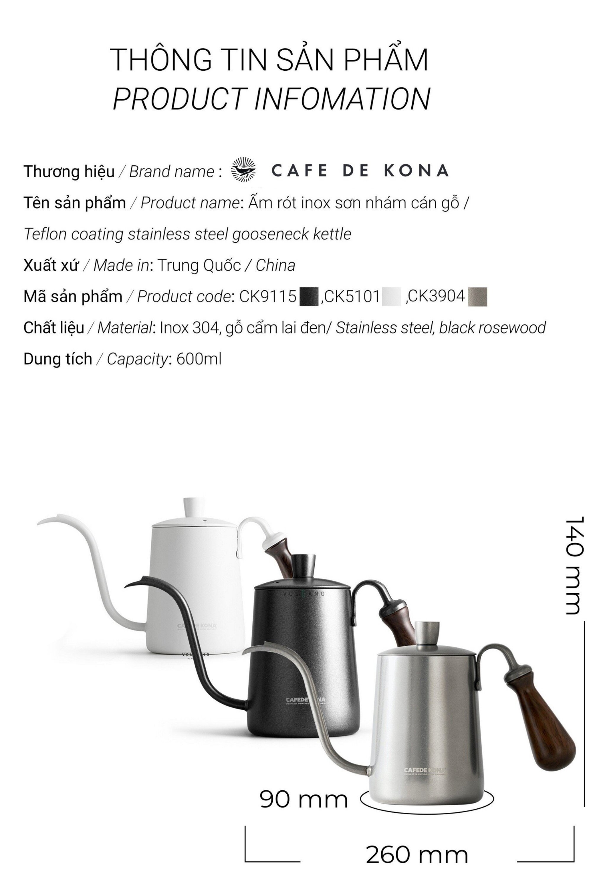 Thông số kỹ thuật Ấm bình rót nước nóng pha cà phê bằng inox, cán gỗ CAFE DE KONA