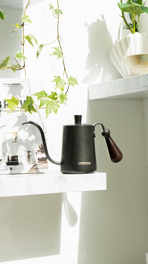 ẤM BÌNH RÓT NƯỚC NÓNG PHA CÀ PHÊ BẰNG INOX, CÁN GỖ CAFE DE KONA