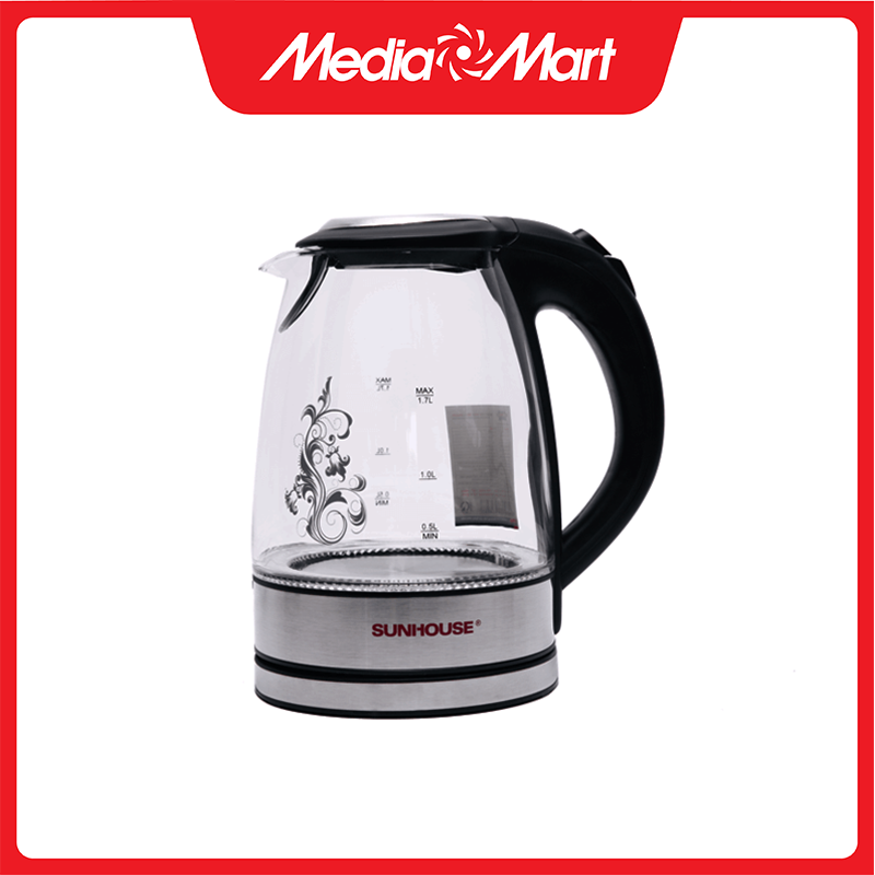 Ấm Siêu Tốc Thủy Tinh Sunhouse SHD1217 (đen, trắng)