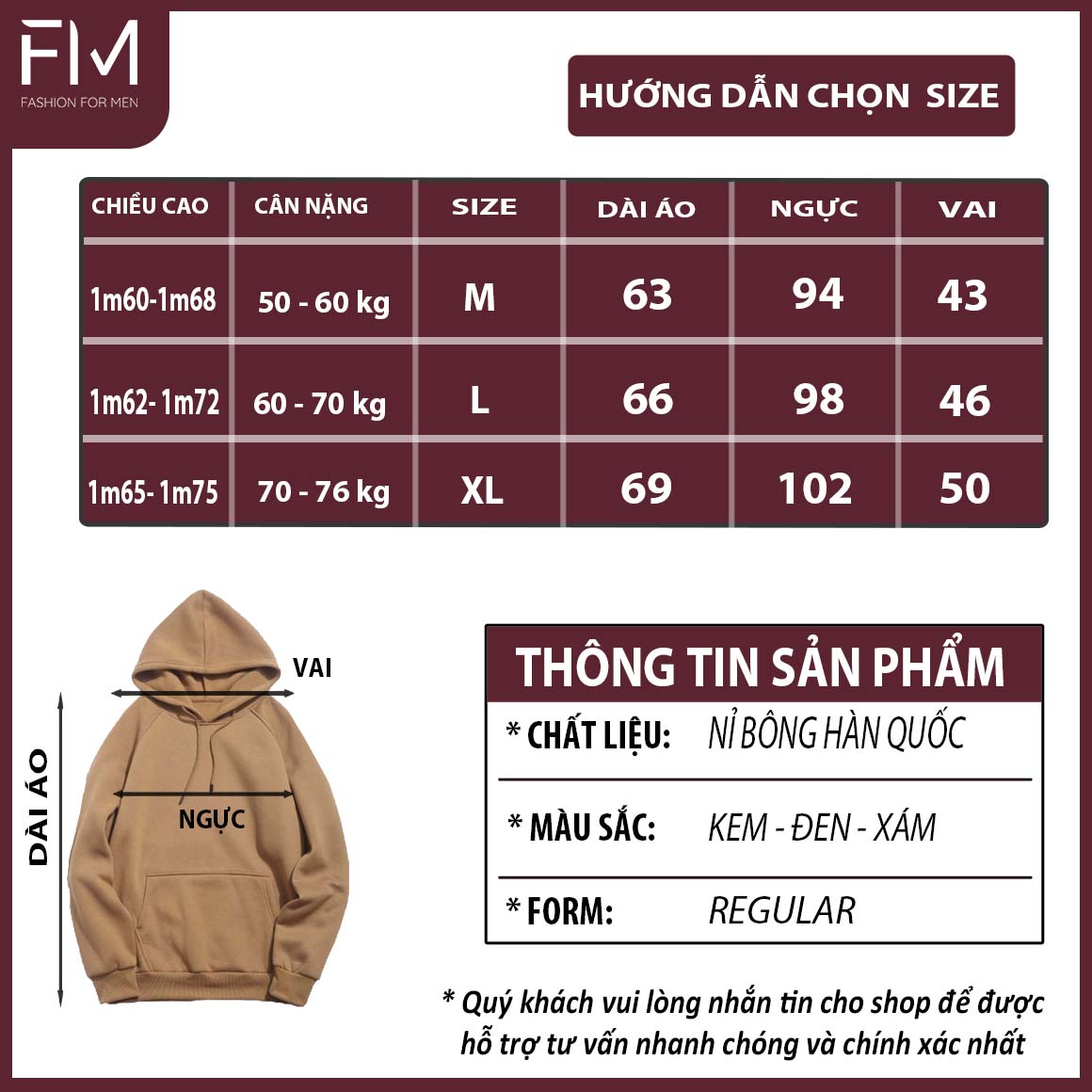 Liên hệ ngay với FORMEN SHOP để được tư vấn size khi cần bạn nhé.