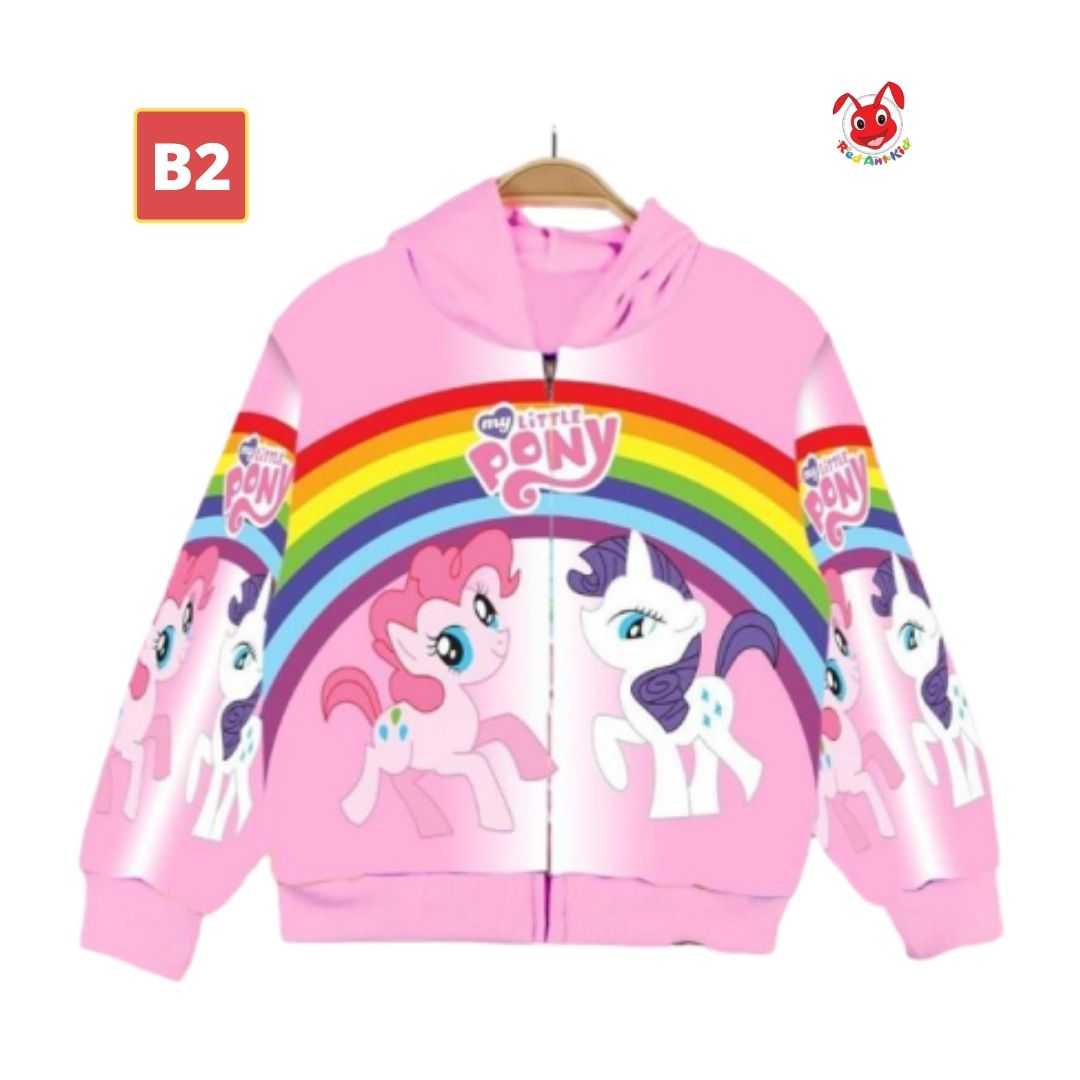 --ÁO KHOÁC BÉ GÁI HÌNH PONY dựa theo phim hoạt hình ngựa pony mà các bé gái yêu mến. Hãy là một bà tiên giúp các thiên thần bé nhỏ hóa thân thành nhân vật bé yêu mến.