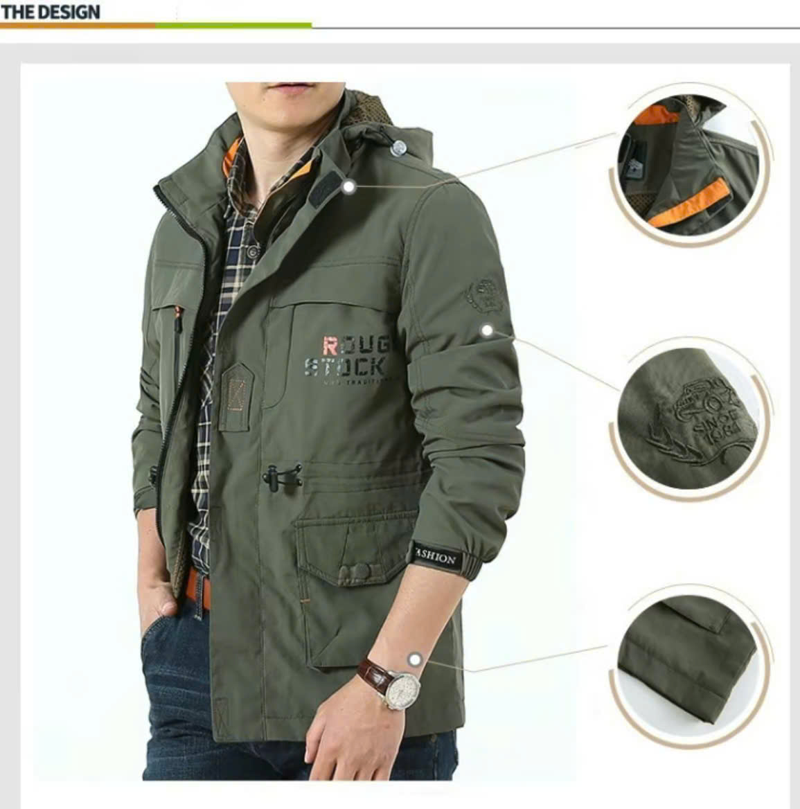 Áo khoác nam mùa xuân và mùa thu Áo khoác ngoài trời chống thấm nước nam dài vừa túi nhiều túi Áo khoác cỡ lớn Quần áo nam