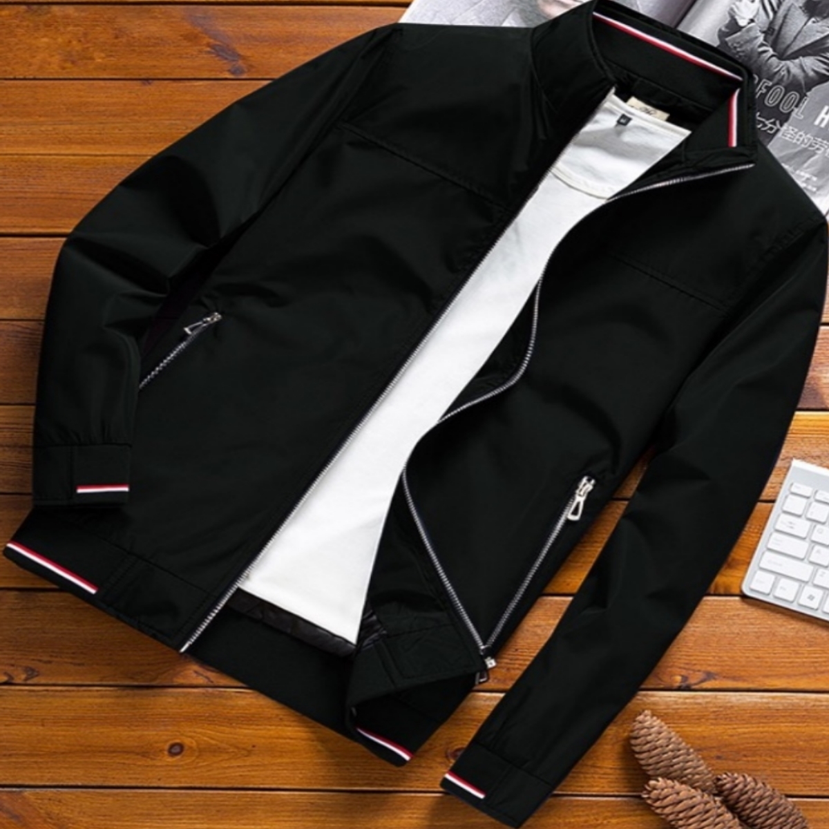 Dây khóa kéo cao cấp lịch lãm , có túi trong , 2 túi 2 bên có dây khóa kéo an toàn , cổ áo kéo sát giúp che chắn tốt khi chạy xe