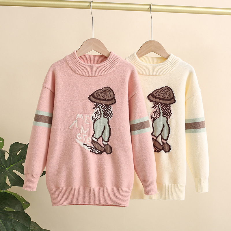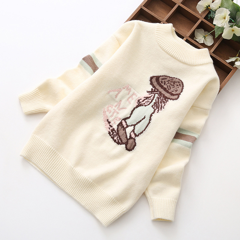 Thông số kỹ thuật Áo len cho bé gái 8-16 tuổi dáng dài, Áo len lông thỏ trẻ em cao cấp hình đáng yêu xuất Hàn đanh sợi không bai xù