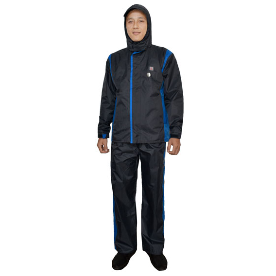 Áo mưa bộ thời trang cao cấp nam ASNM-38 mẫu đen viền sọc line đứng xanh dương đẹp mắt.