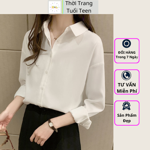 - Sơ mi trắng nữ tay dài form rộng là tín đồ của các bạn gái tuổi teen học sinh , sinh viên.