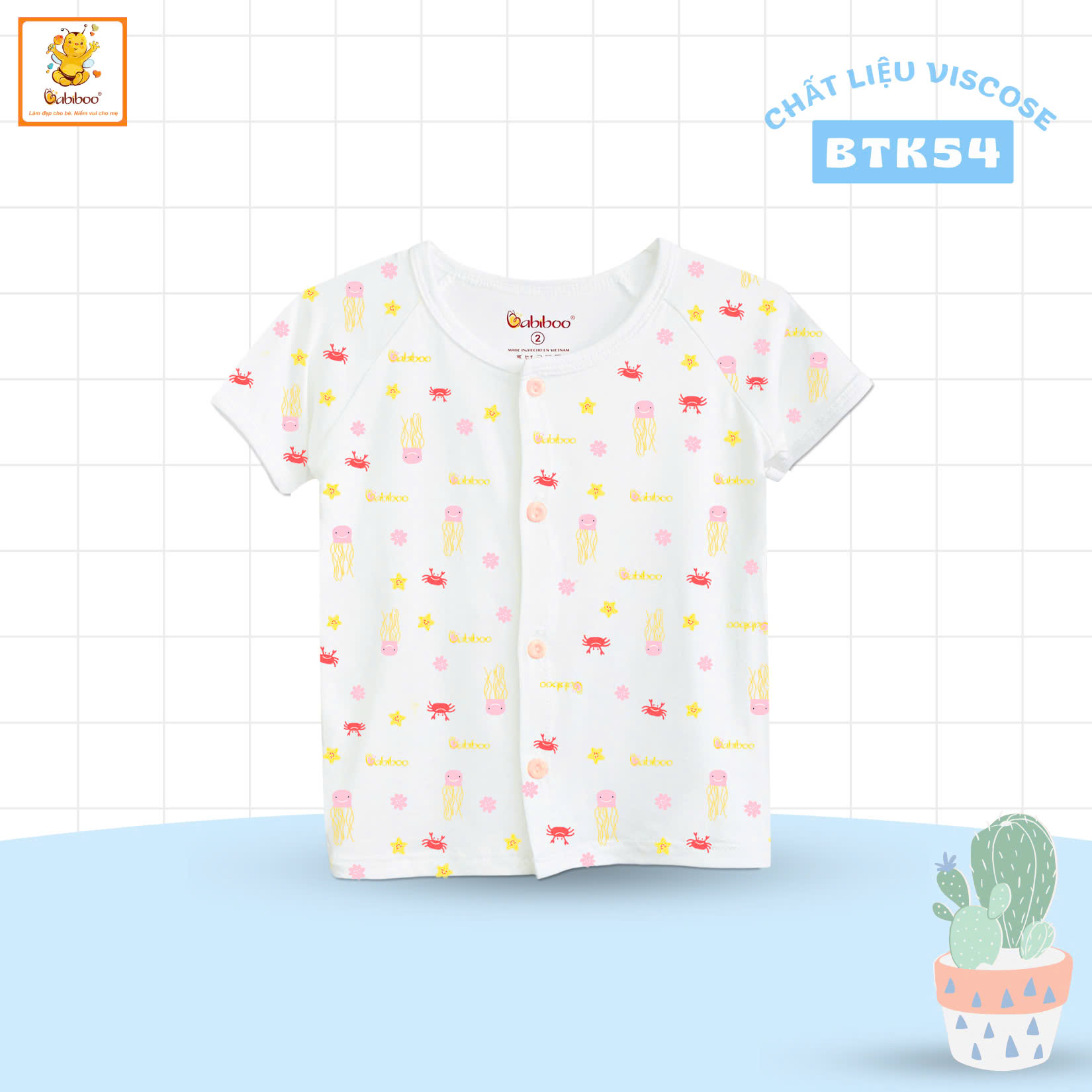 Thông số kỹ thuật Áo sơ sinh tay ngắn hoạ tiết cài thẳng cho bé