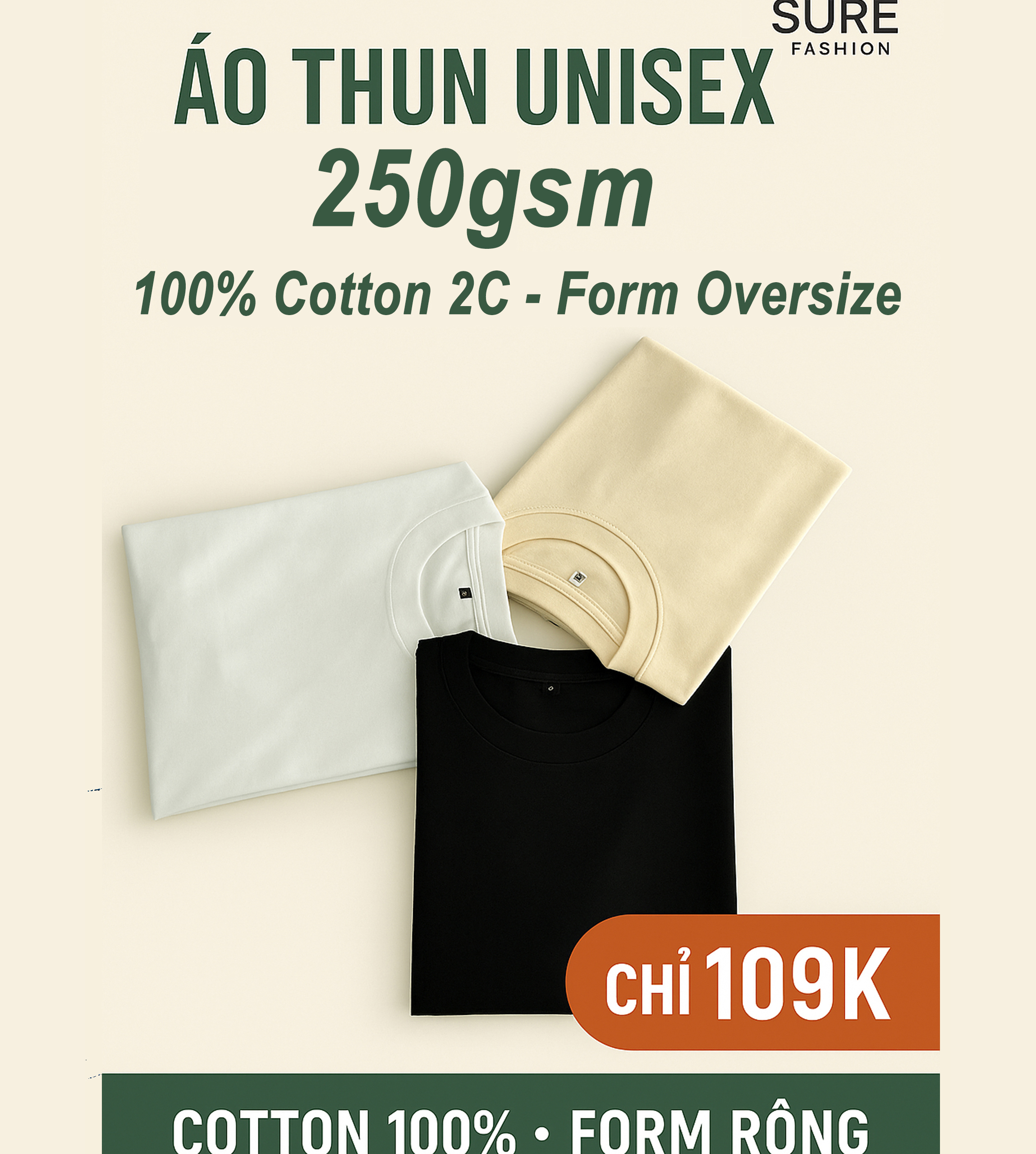 Mua ngay áo thun unisex 250gsm từ Sure Fashion để nâng tầm outfit mỗi ngày – chỉ từ 168K!