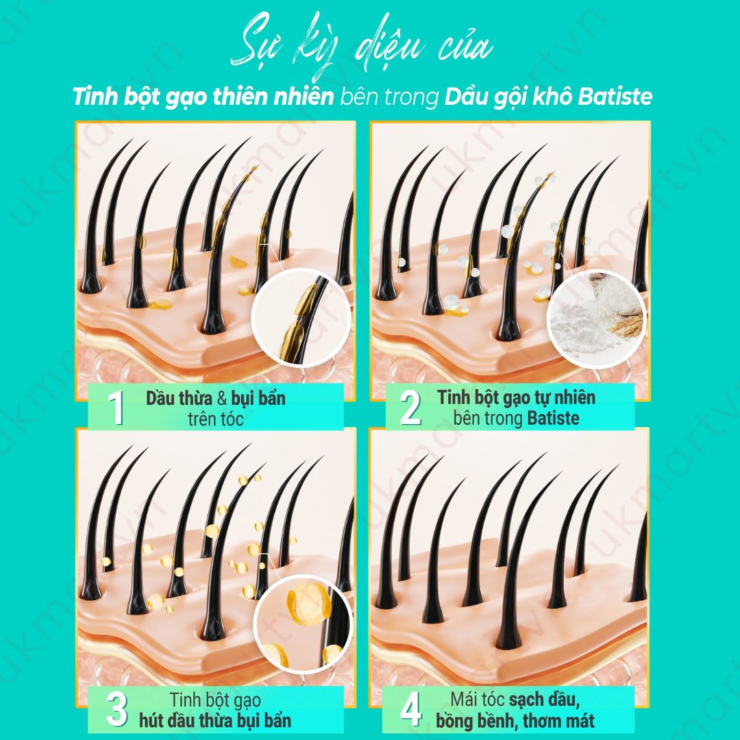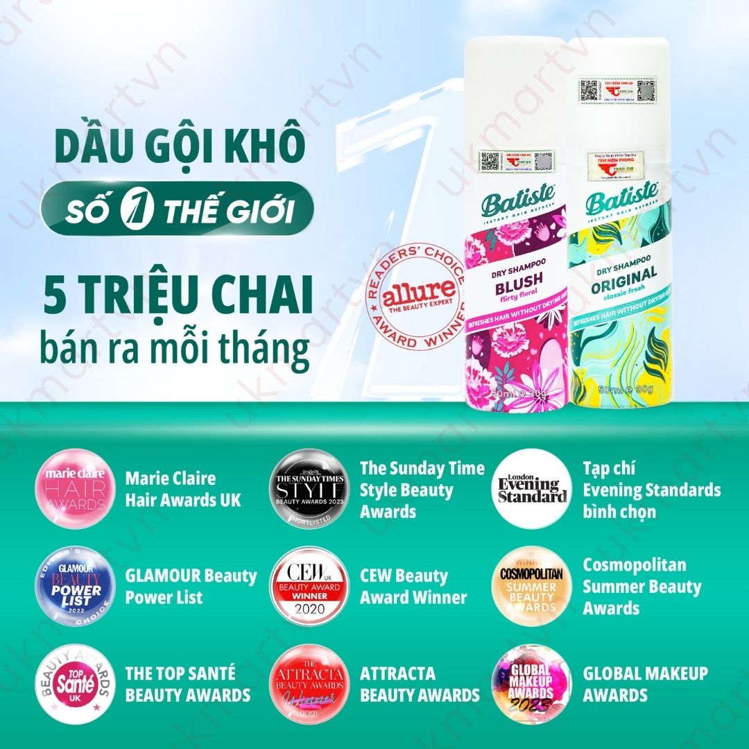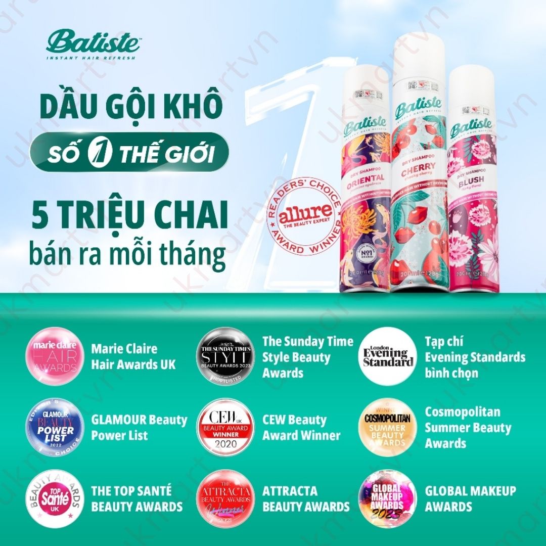 Thông số kỹ thuật Dầu Gội Khô Batiste 200ml Dry Shampoo Gội khô Anh Chính Hãng 100% UK