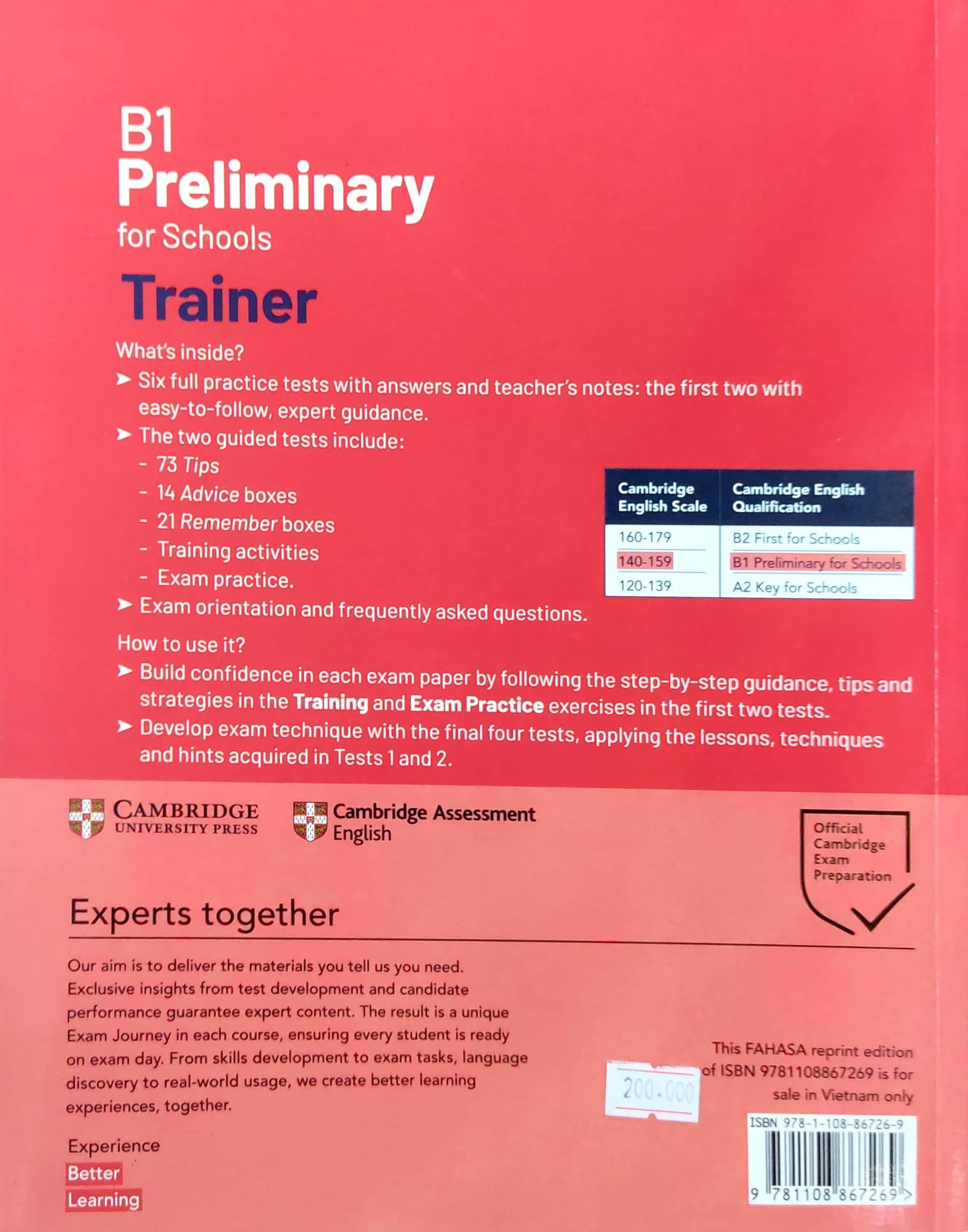 Thông số kỹ thuật B1 Preliminary for Schools Trainer 1 for the Revised 2020 Exam Six Practice test With Answers and Teacher's Notes With Downloadable Audio