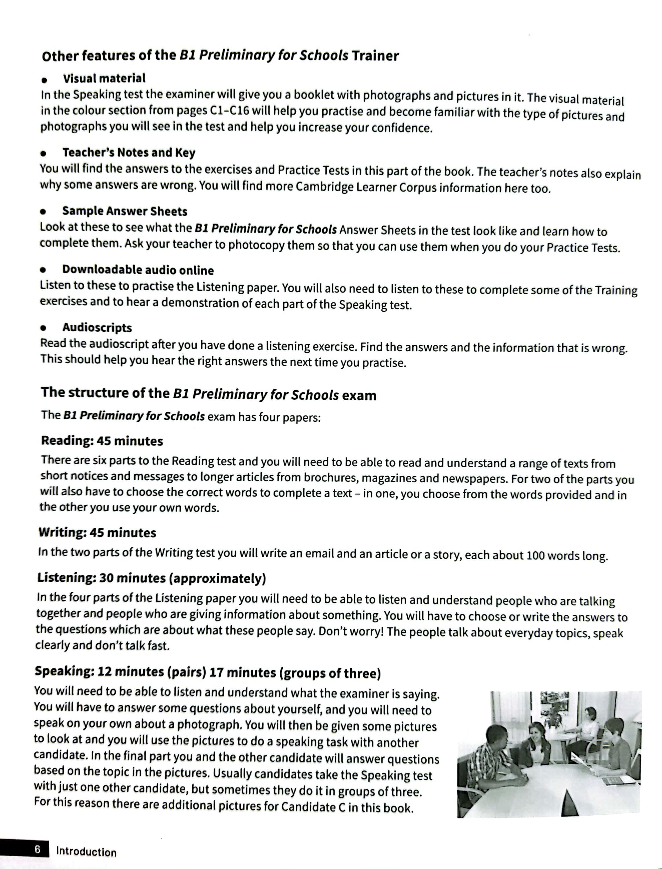 B1 Preliminary for Schools Trainer includes six full practice tests, the first two with easy-to-follow, expert guidance. The two guided tests include: 42 Tips, 24 Advice boxes, 12 Remember boxes, Training activities, Exam practice, Exam orientation and frequently asked questions. Build confidence in each exam paper by following the step-by-step guidance, tips and strategies in the Training and Exam Practice exercises in the first two tests. Develop exam technique with the final four tests, applying the lessons, techniques and hints acquired in Tests 1 and 2.