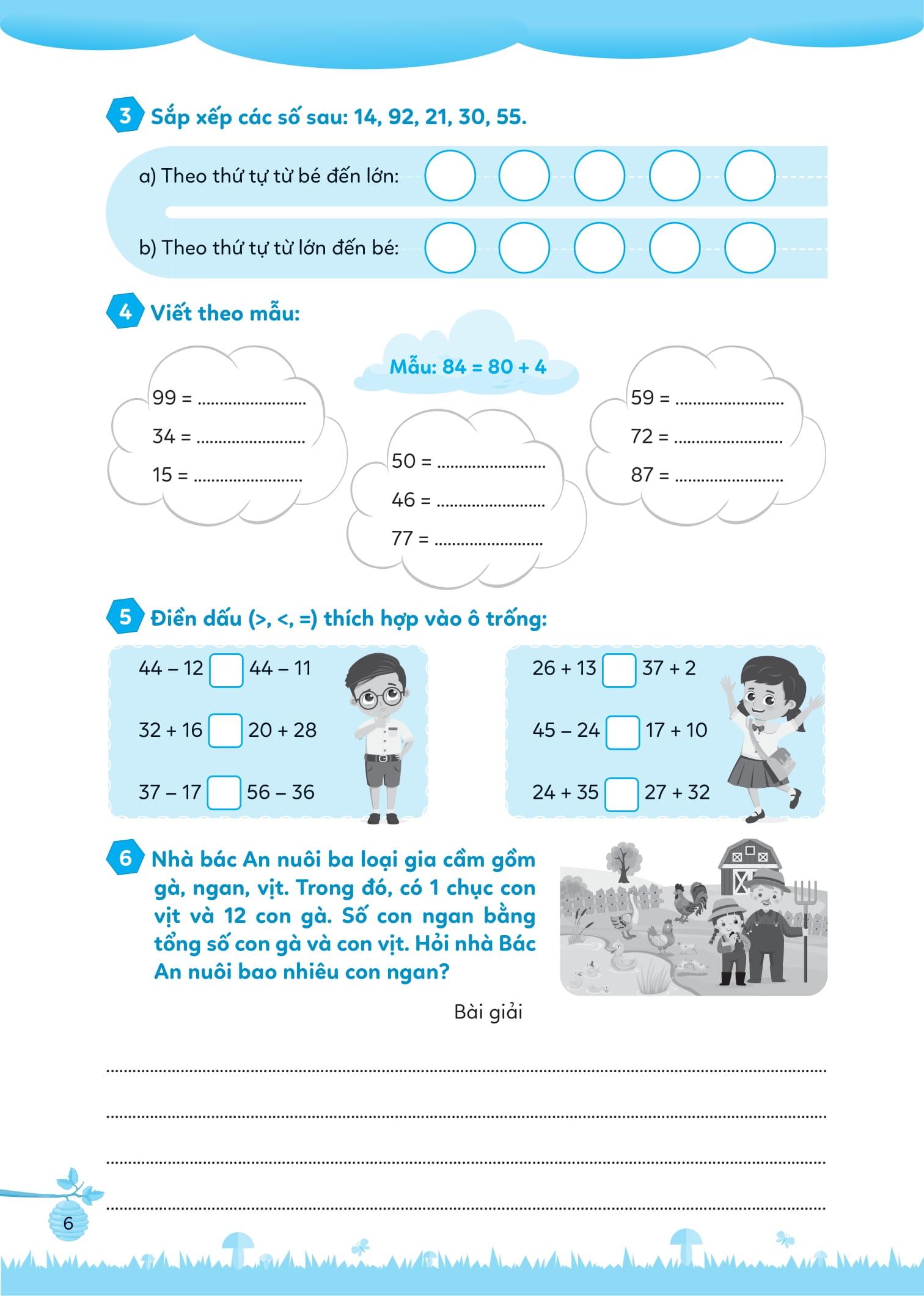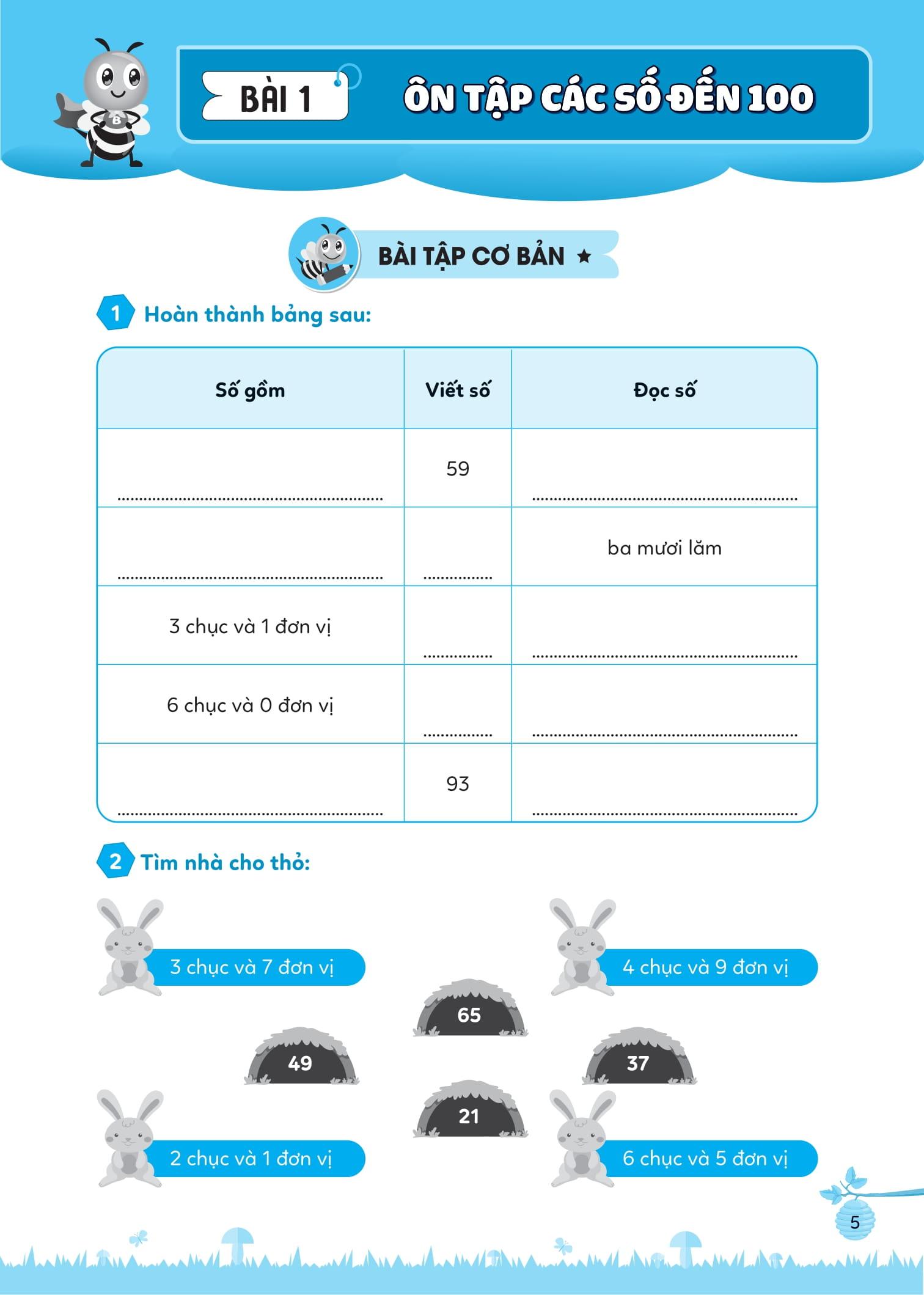 Các bài tập trong phần này được thiết kế sinh động, đầy cảm hứng với rất nhiều các hoạt động nối, tô màu, điền số, giúp khơi gợi hứng thú học và làm bài tập của các em, đồng thời giúp các em củng cố và nắm chắc các kiến thức đã học.