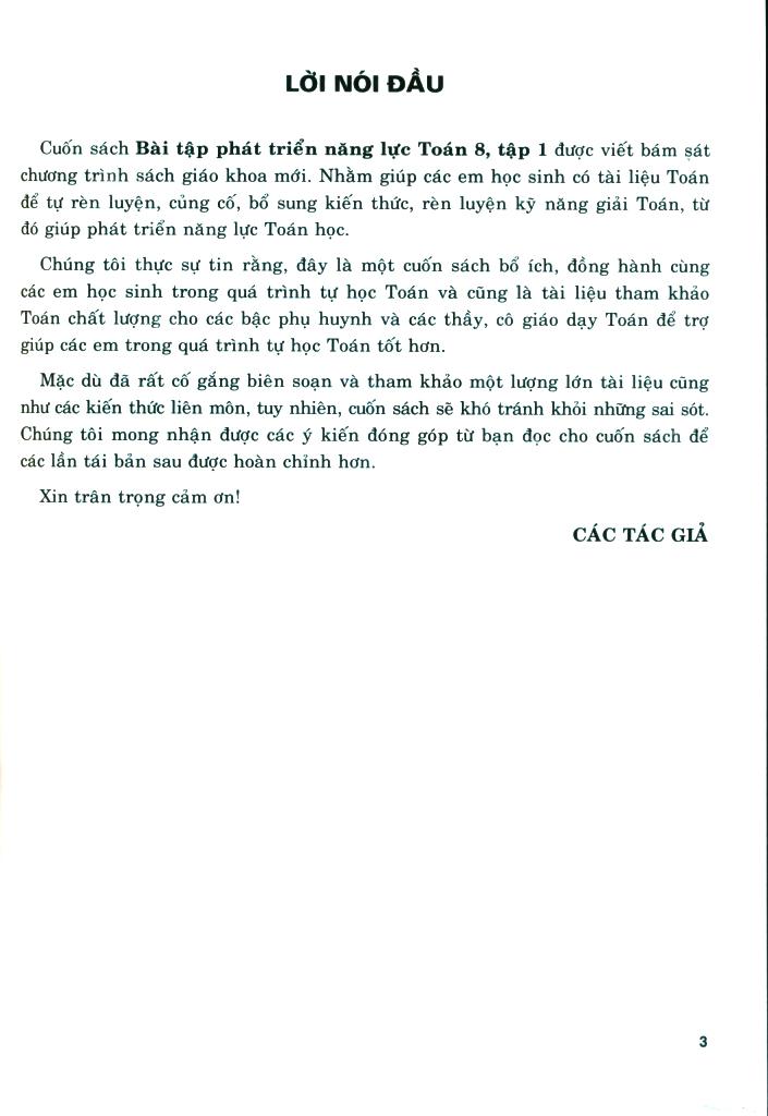Bài Tập Phát Triển Năng Lực Toán 8 - Tập 1