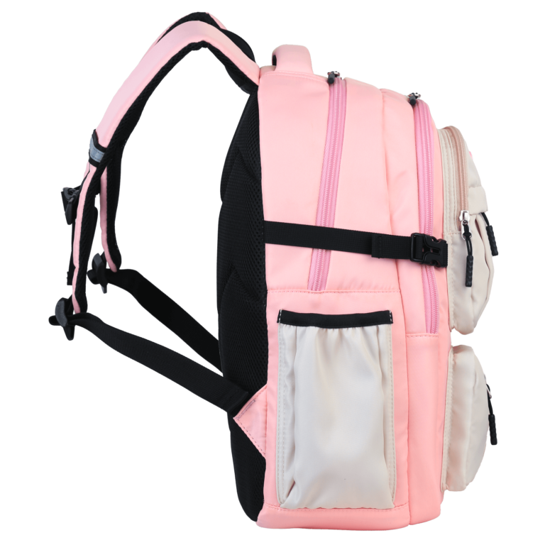 Mặt bên của balo là 1 ngăn vải phụ có bo chun và 1 túi hộp được thiết kế khóa kéo kín đáo để bạn có thể đựng bình nước, dù đi mưa mà không sợ rơi ra khi di chuyển.