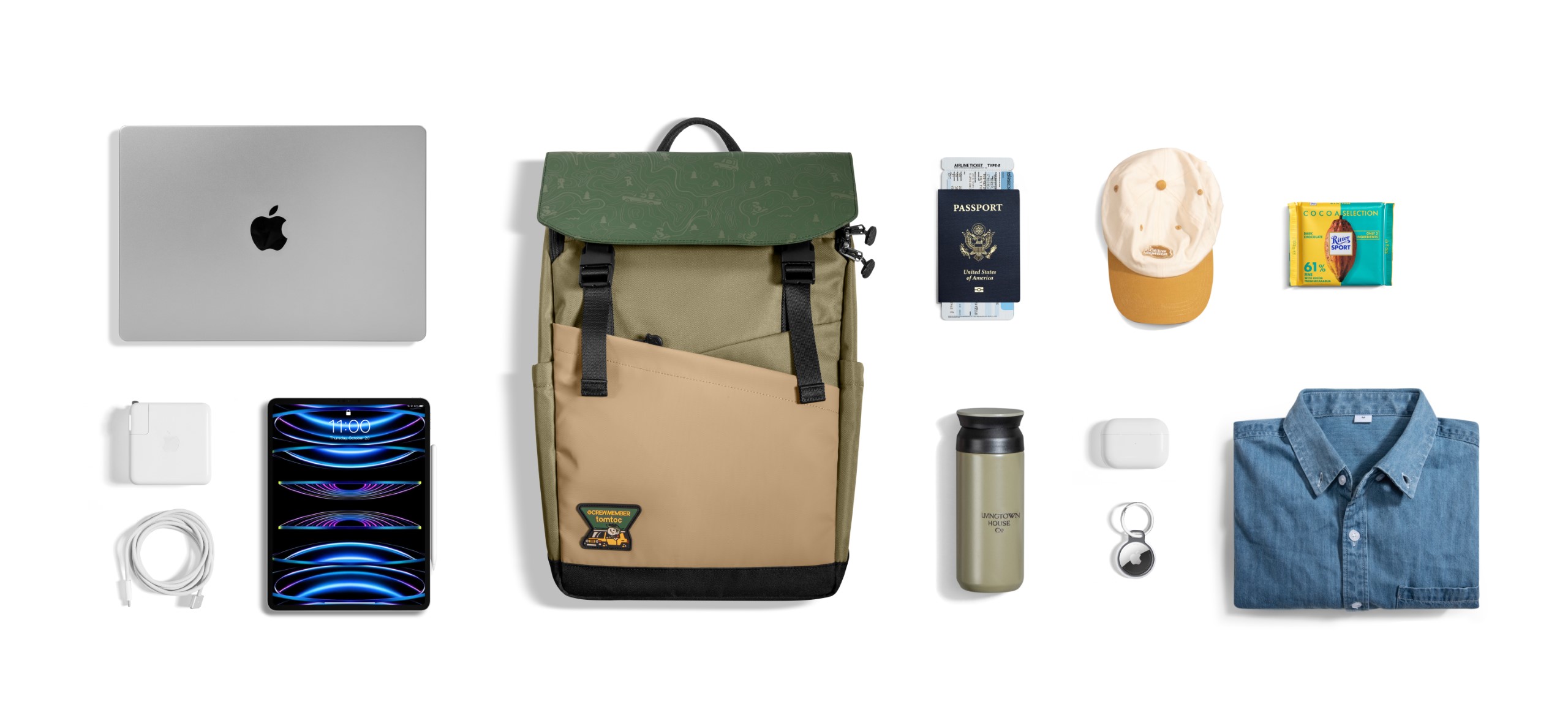 Ba lô máy tính xách tay Tomtoc Flap có thể sắp xếp hoàn hảo máy tính xách tay, dành cho iPad, hồ sơ, ví, sách, chìa khóa, chai nước, ô, quần áo nhẹ, v.v.