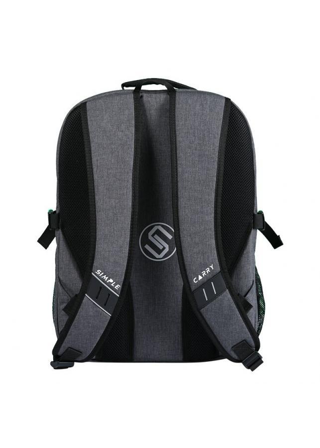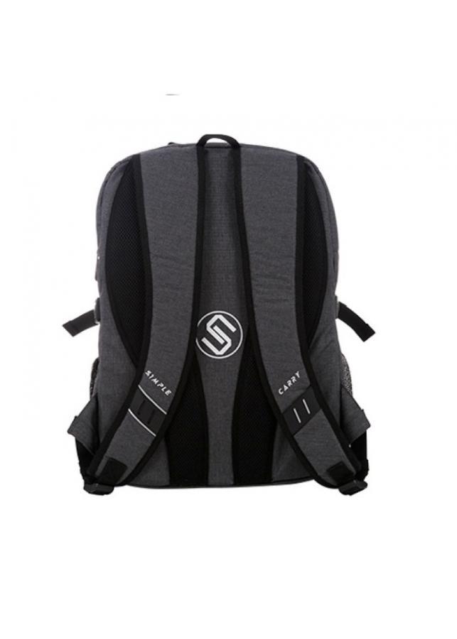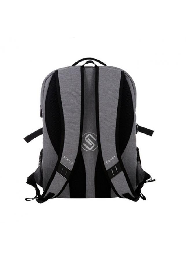 - Thân sau: Phần lưng có lớp lưới Air Mesh thoát hơi nhanh, in logo tròn của Simplecarry.