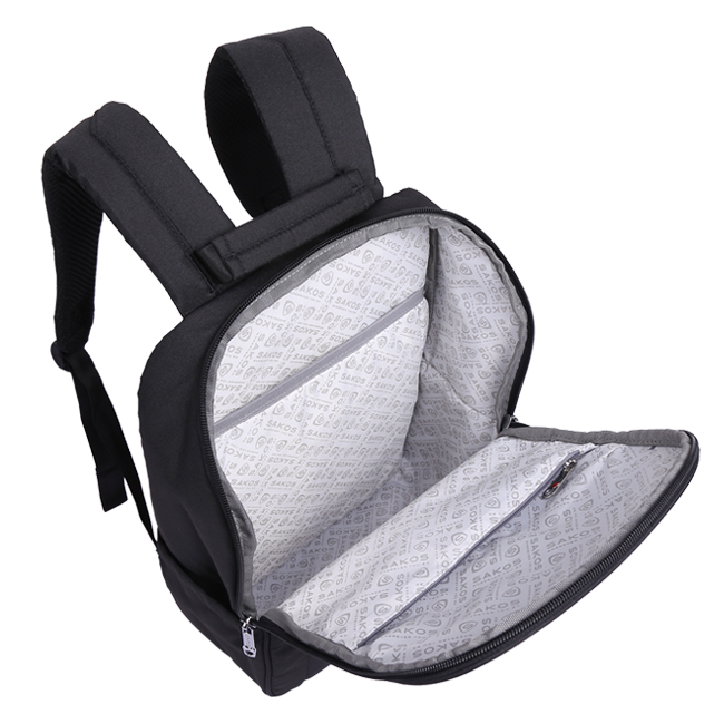 Balo Sakos Frontier có thiết kế với một ngăn chính rộng rãi, trong đó có ngăn để laptop 14 inch chống sốc tốt, khoảng để đồ rộng rãi cho phép mang theo nhiều sách vở tài liệu hoặc khoảng 2-3 bộ quần áo.