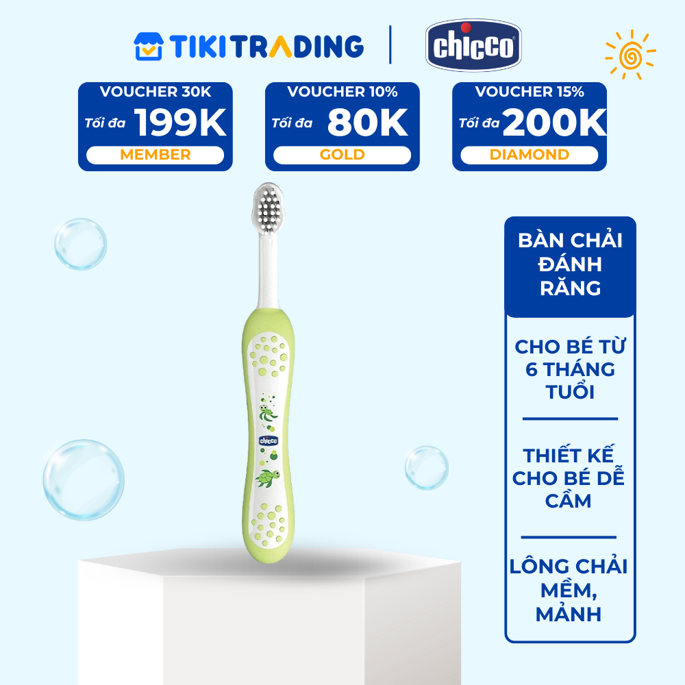 - Bàn chải đánh răng Chicco - chăm sóc răng cho bé - phù hợp với các bé từ 6 tháng tuổi