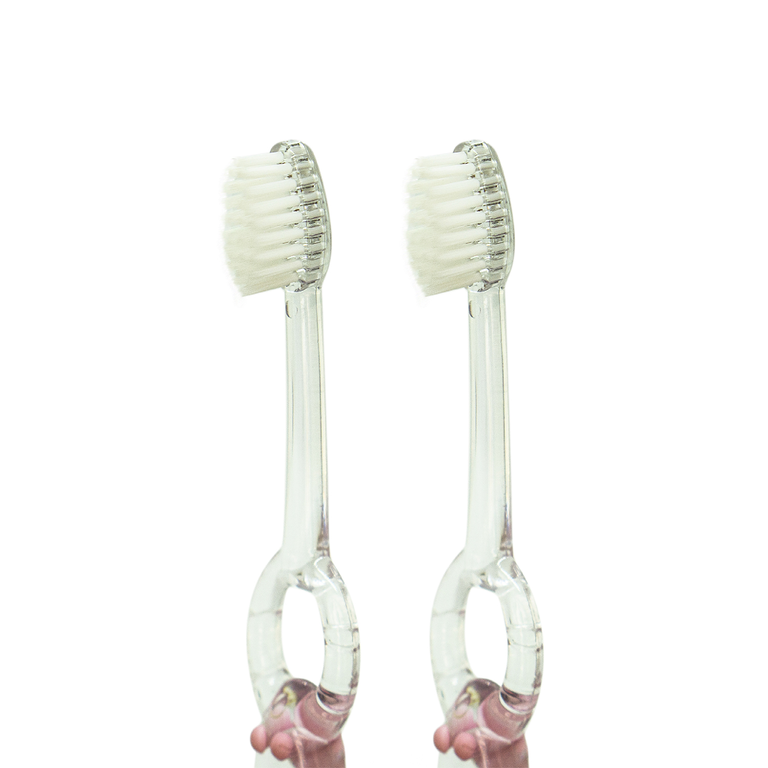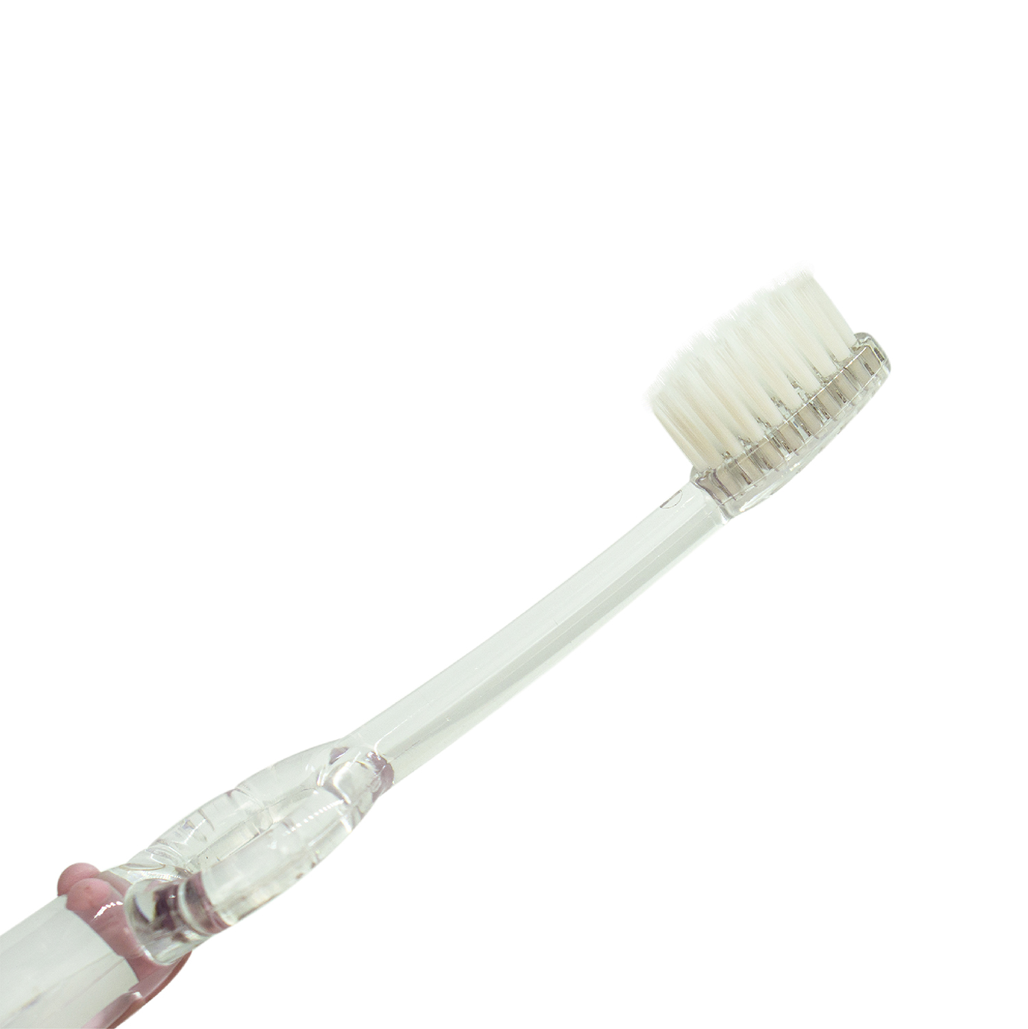 Cán và thân bàn chải được thiết kế sang trọng từ nhựa nguyên sinh trong suốt cao cấp chống ẩm mốc nhập khẩu từ Đức với thiết kế hình thù ngộ nghĩnh và đầu cán hút chân không giữ cho bàn chải thẳng đứng, tạo cảm giác thích thú cho bé khi chải răng.