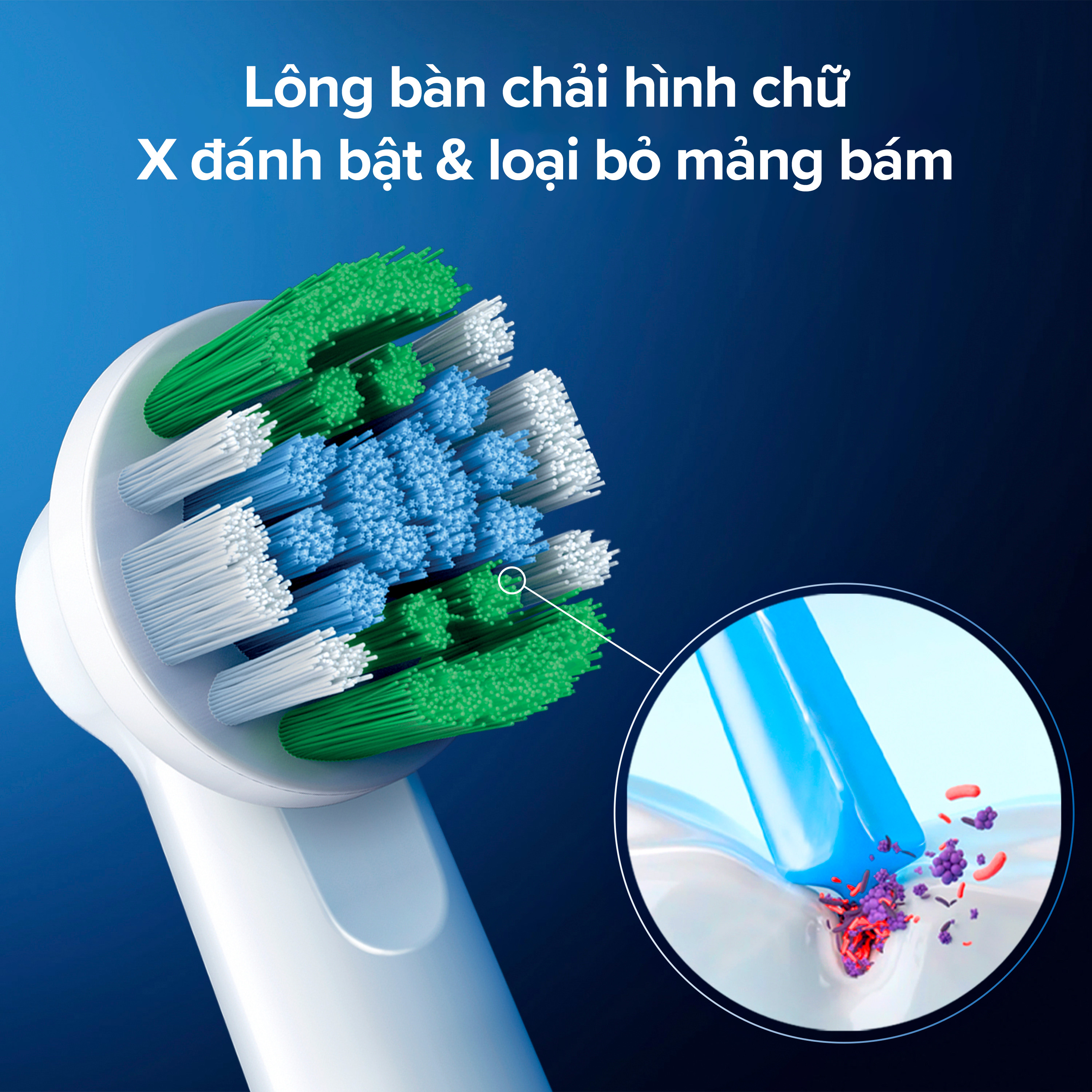 - Đầu bàn chải Everyday Clean có lông bàn chải hình cốc co cụm làm sạch hoàn hảo, lách sâu vào kẽ răng để loại bỏ nhiều mảng bám hơn so với bàn chải bằng tay thông thường.