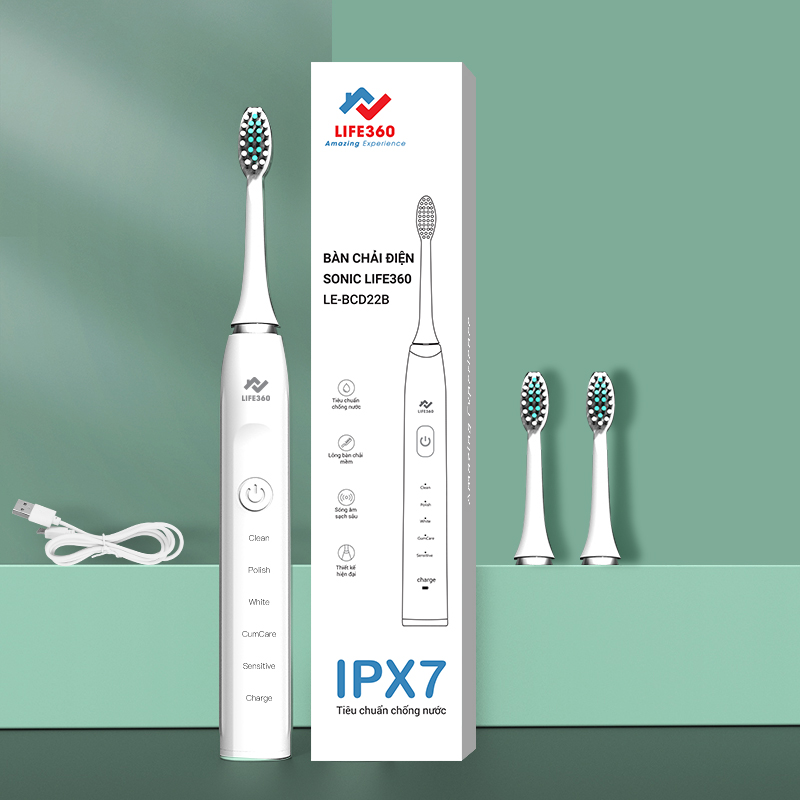 Thông số kỹ thuật Bàn Chải Điện Sonic Life360 LE-BCD22B - Chải Sạch Mảng Bám Tới 10 Lần, Chống Nước IPX7